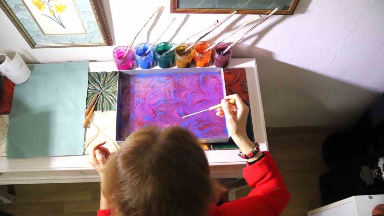 İzmir’de yaşayan Nebahat Türkyılmaz, atık halde bulunan deri parçalarına Ebru Sanatını işleyerek onları; defter, cüzdan, gözlük kılıfı, takı ve çanta gibi eşyalara dönüştürüyor. El emeğiyle ürettiği eşyaları ileri dönüşüme kazandıran Nebahat Türkyılmaz, "Hedefim Somut Olmayan Kültürel Miras Listesi’ne girmek" dedi.