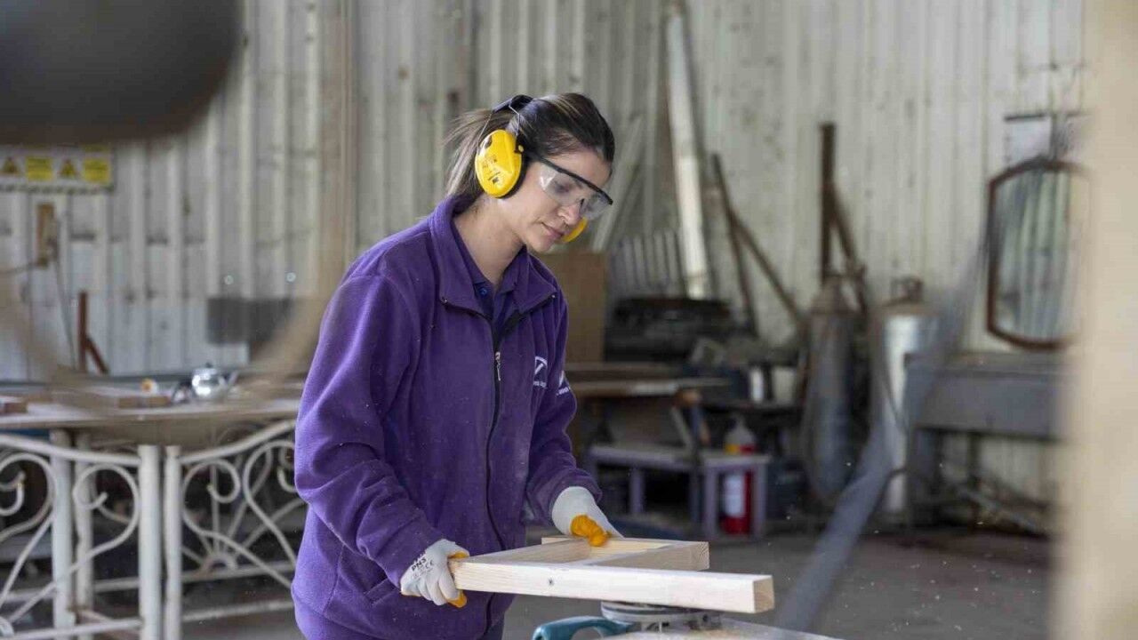 Dedesinden gördüğü marangozluk mesleğini sevdiği için hep bir merakının olduğunu dile getiren Özdemir, "Atölyede kadın marangoz aradıklarını duyunca başvuruda bulundum. Bir süre çalışınca işi sevdim ve kalfalık sertifikasını aldım. Atölyede 5 yıl boyunca ustalarımızla beraber birimlerimize malzemeler ürettik. 5 yılı doldurduktan sonra da ustalık belgemi aldım. Geri dönüşüm atölyemizde şimdiye kadar dairemizin birimlerinin mobilyalarının tamamına yakınını ürettik" dedi.