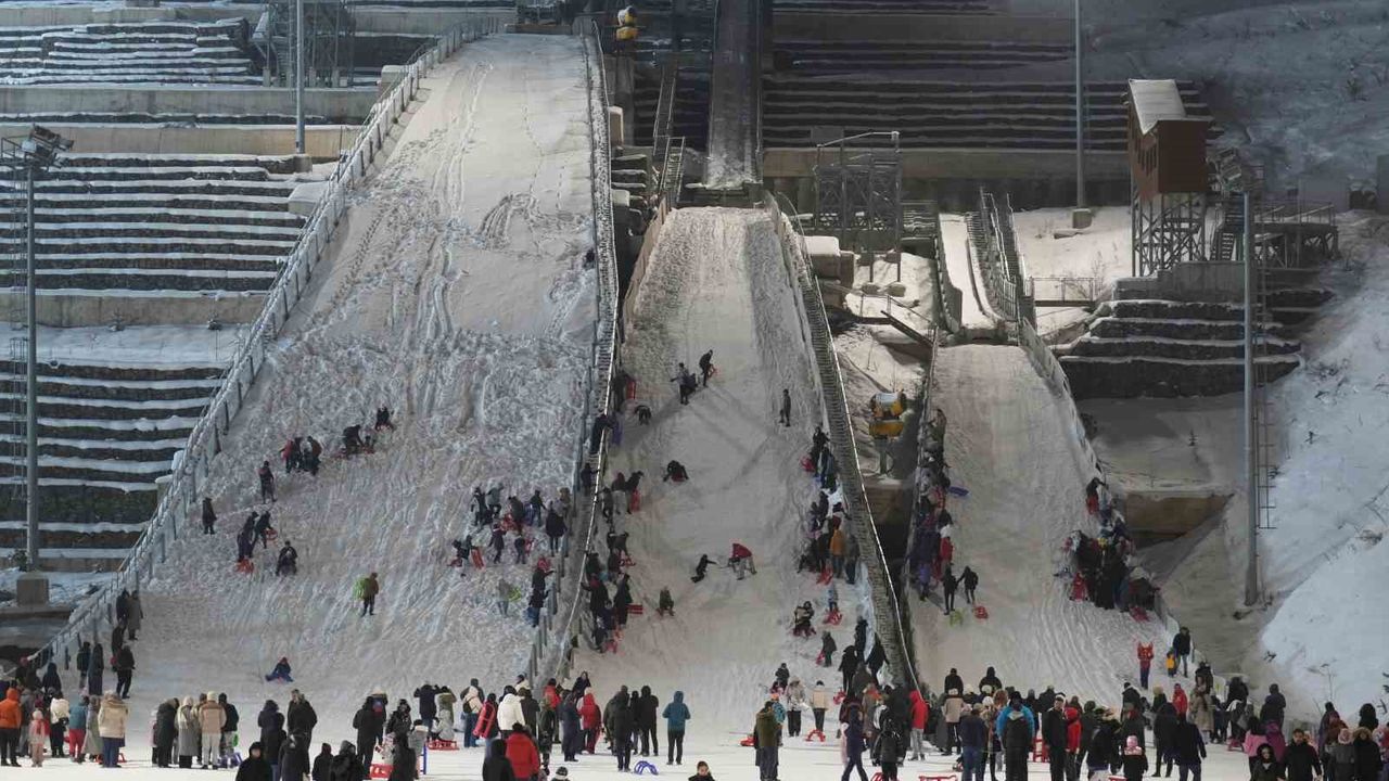 Erzurum'da Atlama Kuleleri'nde iki gün devam eden 'Kızak Şenliği' coşkuyla ve yoğun bir katılımla devam etti. Aileler ve çocukların adeta mahşeri kalabalığa sebep olan etkinlikte eğlence bir an olsun durmadı. Kızaklar kayıldı, halaylar çekildi, sahlep ikramı ile katılımcıların içi ısındı. 7'den 70'e herkesin doyasıya eğlendiği bu güzel günde yüzler hep gülümsedi. Erzurum Gençlik ve Spor İl Müdürlüğü tarafından yapılan organizasyonda kızaklarını alarak atlama kulelerinin olduğu alana gelen çocuklar doyasıya eğlenceli ve coşkulu anlar yaşadı. Yapılan açıklamada, 'Atlama Kulelerimizde devam eden tadilat sürecine rağmen, gerekli tüm güvenlik ve kontrol önlemlerini alarak tesisimizi halkımızın kullanımına açtık. Hafta sonu gerçekleştirdiğimiz programda vatandaşlarımızı misafir ettik, alanda ikramlarda bulunduk. Hemşehrilerimizin bu heyecanı ve mutluluğu bizler için en büyük motivasyon oldu. Halkımızı sporla, özellikle de kış turizmiyle buluşturmayı önceleyen anlayışımızla; imkânlarımız el verdiği sürece tesislerimizi toplumumuzun hizmetine sunmaya devam edeceğiz' denildi.