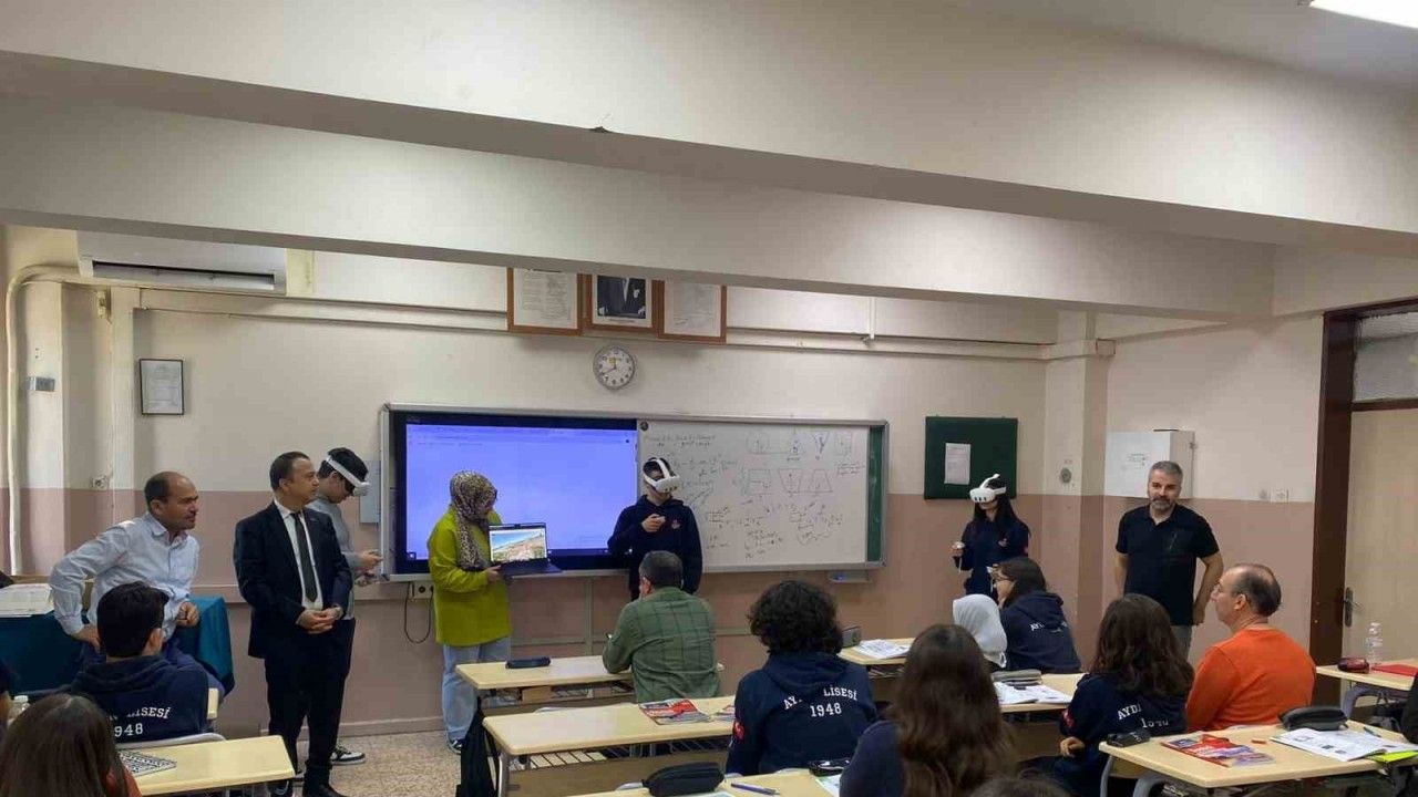 Aydın Lisesi’nde Coğrafya dersi öğrenciler için unutulmaz ve ilham verici bir öğrenme deneyimine dönüşürken, ADÜ Eğitim Fakültesi Sosyal Bilgiler Eğitimi Anabilim Dalı’ndan Arş. Gör. Alaattin Arıkan, sanal gerçeklik (VR) teknolojisini derse entegre ederek 10. sınıf öğrencilere geleceğin eğitim anlayışını sahaya taşıyan örnek bir uygulama sundu.