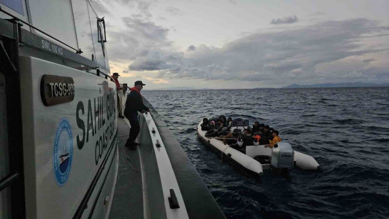 Aydın’ın Didim ilçesinde lastik bot içerisinde sürüklenen 11’i çocuk 23 düzensiz göçmen kurtarıldı.