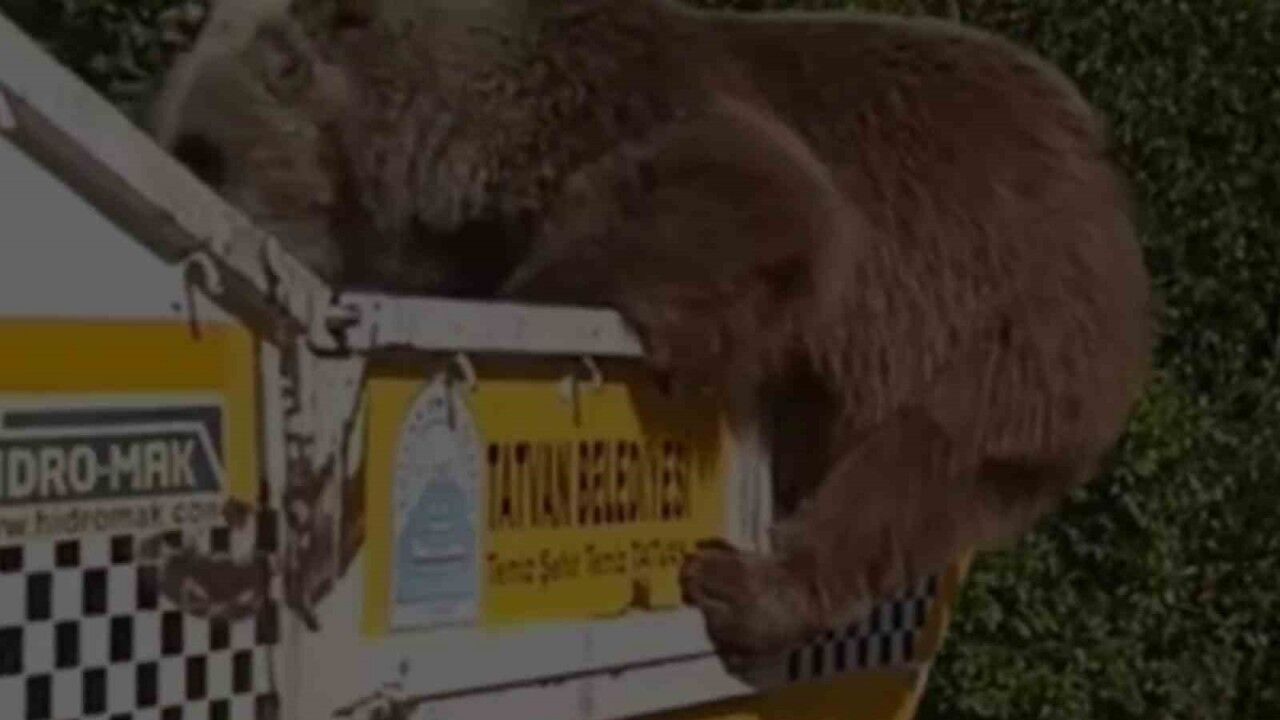 Bitlis’teki Nemrut Krater Gölü civarında aç kalan bir ayı, çöp kamyoneti kasasında yiyecek ararken görüntülendi.