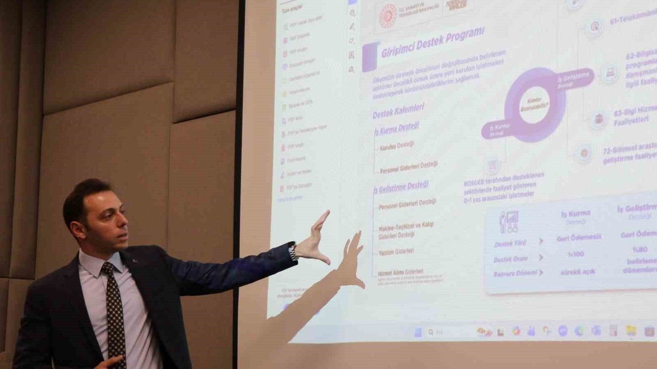 AYTO Akademi Eğitim Salonu'nda düzenlenen toplantıda, Küçük ve Orta Ölçekli İşletmeleri Geliştirme ve Destekleme İdaresi Başkanlığı Aydın İl Müdürü Berkay Çetin Oral tarafından başta İmalat Sanayi İçin Kredi Finansmanı ve İstihdamı Koruma Programı olmak üzere devletin sunduğu destekler hakkında kapsamlı bilgiler verildi. KOBİ'lerin üretim gücünü artırmaya yönelik desteklerin önemine dikkat çeken Oral, imalatçı ve büyüme hedefi olan işletmeler için sunulan fırsatları katılımcılarla paylaştı.Toplantıya AYTO Yönetim Kurulu Üyesi Belgin Çekmen Altay da katılırken, program katılımcıların sorularının yanıtlanmasıyla sona erdi.