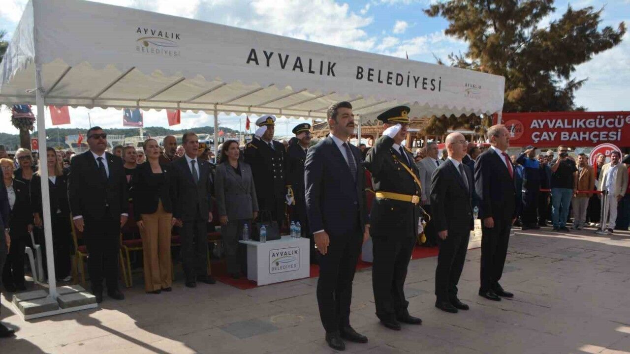 Ayvalık Kaymakamı Hasan Yaman, Garnizon Komutanı Personel Albay Hüseyin Aydın, Belediye Başkanı Mesut Ergin ve İlçe Cumhuriyet Başsavcısı Mehmet Fatih Acemoğlu’nun öncülüğünde gerçekleşen törene; daire amirleri, gaziler, siyasi partilerle sivil toplum kuruluşlarının temsilcileri, öğretmenler, öğrenciler ve kalabalık bir vatandaş topluluğu katıldı.