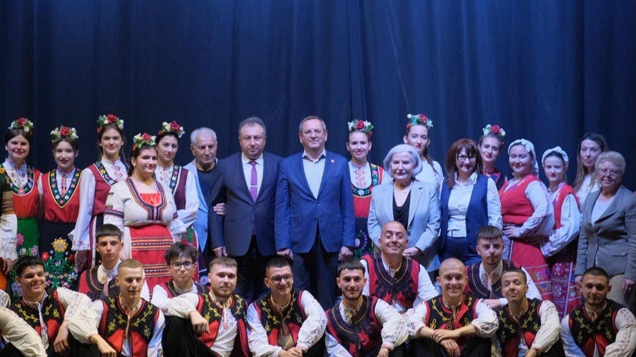 Bulgaristan'ın Shumen kentinden gelen heyet, Ayvalık'ta düzenlenen anlamlı bir sanat etkinliğinde ağırlandı. Mesut Ergin, Shumen Belediye Başkanı Hristo Hristov ile birlikte 'Sava Dobroplodni' Sanat Okulu öğrencilerinin sahne aldığı 'Sınır Tanımayan Sanat' konserini Rauf Denktaş Kültür Merkezi'nde izledi.
