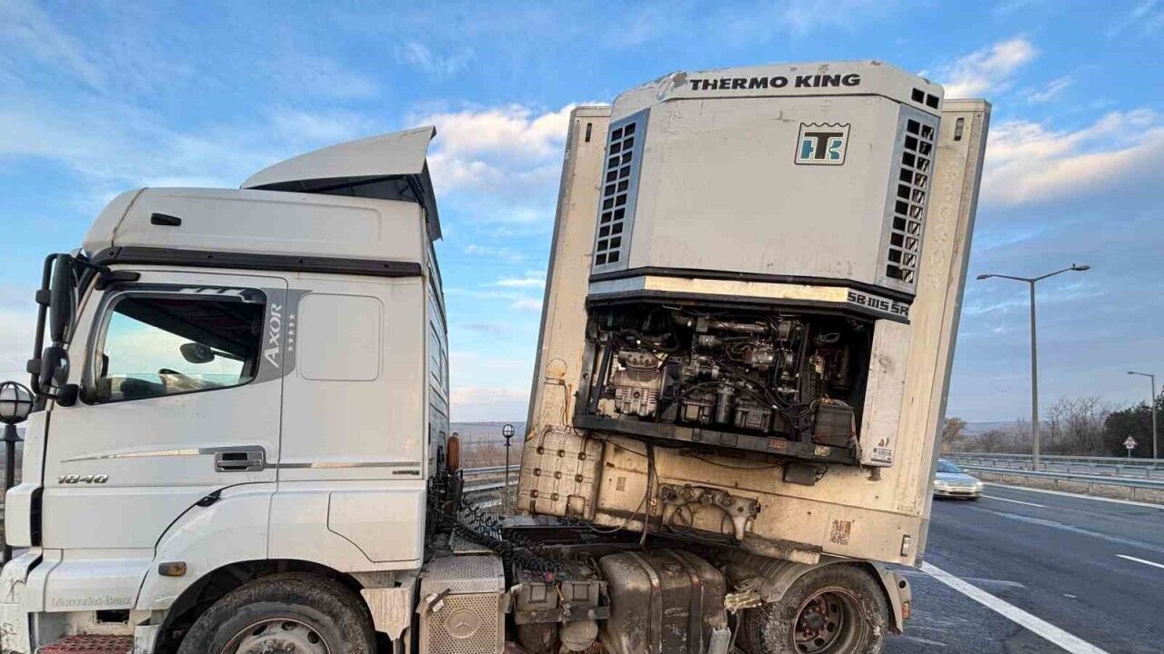 Edinilen bilgilere göre, Edirne istikametinden İstanbul istikametine giden Celil B. idaresindeki 80 ACU 112 plakalı tır sürücüsü, direksiyon başında kalp krizi geçirdi. Sürücüsünün rahatsızlanması sonucu kontrolden çıkan tır, yol kenarında bulunan bariyere çarparak durabildi.