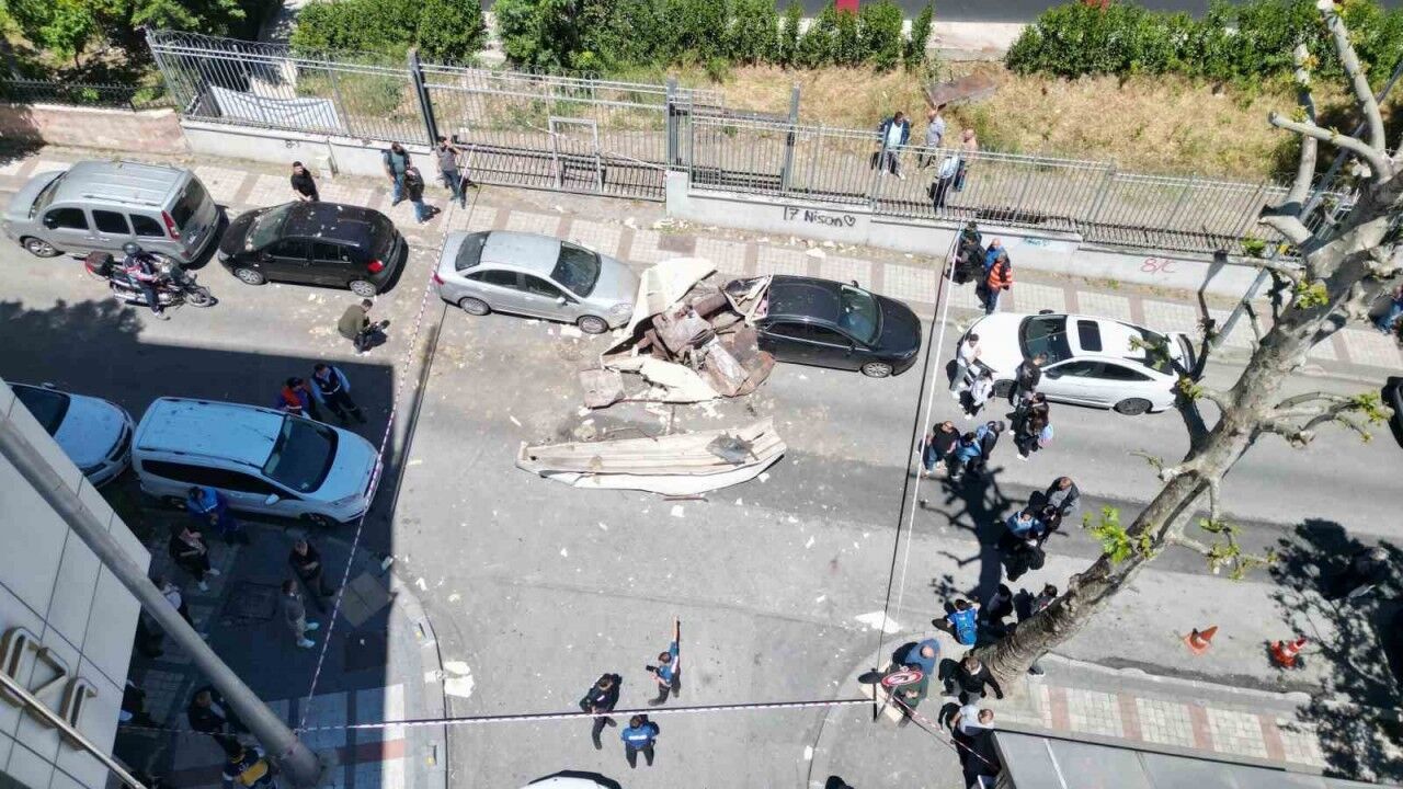Kaçak atölyede yaşanan patlamanın şiddeti, havadan çekilen görüntülerde gözler önüne serildi. Patlamanın yaşandığı atölyeden fırlayan buhar kazanına ait dev parçalarının 5 katlı binayı aşarak diğer sokaktaki araçların üzerine düştüğü görüldü. Parçaların düştüğü alanın hemen yanında bir okul bulunması da dikkat çekti.