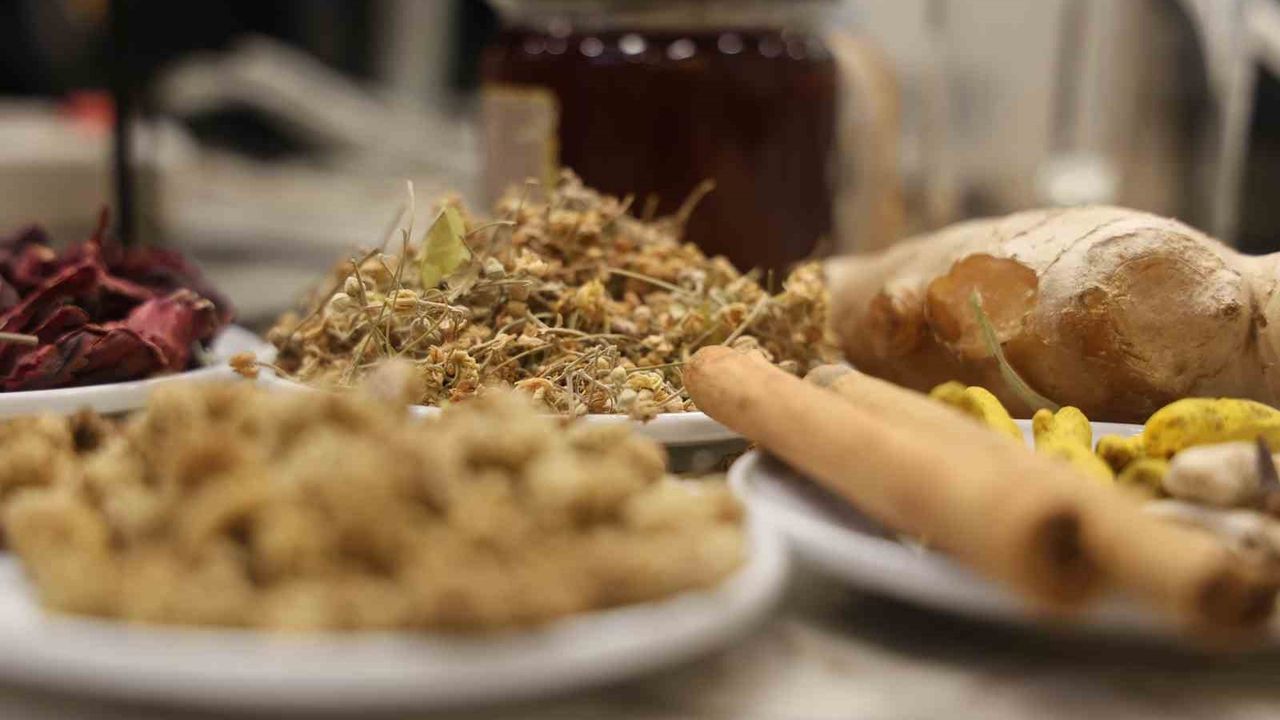 Havaların soğuması ile beraber vücut direncinin düştüğüne dikkat çeken Tıbbi ve Aromatik Bitkiler Teknikeri Şerife Akkuş, 'Evlerimizde içimizi ısıtacak birkaç bitkiden bahsetmek gerekirse, özellikle çocuklarda da bu bokavirüsünden kaynaklı oluşan vücut direnci düşüklüğü, bağışıklık sistemi düşüklüğünden kaynaklı hem içi ısıtacak hem de vücut direncini arttıracak bitkiler var. Özellikle tıbbi ada çayı doğal antibiyotik olarak geçer. Boğaz enfeksiyonlarında kullanabileceğimiz harika bir çay. Tabii ki bu kış çayları arasında olmazsa olmazımız, çiçek ıhlamur, nadide bir üründür balla tatlandırıp tadı da efsane oluyor. Yanında hibiskus çiçeği narçiçeği olarak da bilinir, çok güzel bir renk verir, çocukların tadını severek içeceği bir ürün. Özellikle bu hastalıklara karşı vücut direnci düşüklüğüne, vücuttaki enfeksiyon oranı yüksekliğine, bunu düşürmek adına da beyaz dut kurusu, bu karışımın içerisinde birkaç tane dut kurusu atıp demleyip içmek faydası büyüktür. Karışımın olmazsa olmazı kök zencefil, bu taze halde var. O şekilde de tüketebiliriz ama bu çayımızın içerisine bir kök zencefil atmamız yeterli olur. Zerdeçal kökümüz ve çubuk tarçınımız, bunu da ortadan kırıp bir adet ekleyebiliriz. 3-4 tane anti-mikrobiyal özelliği olduğu için karanfil tanesinden atabiliriz' dedi.