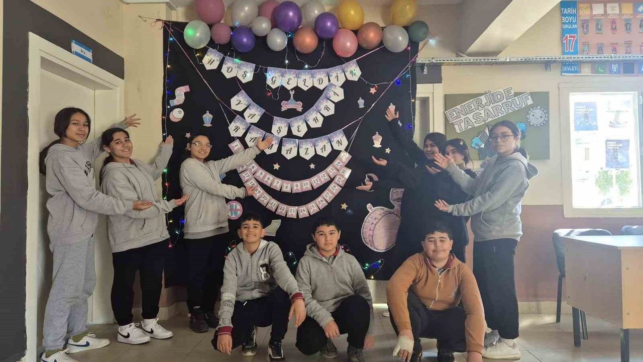 Sarıgöl ilçesinde eğitim veren Bağlıca Halil Duran Ortaokulu öğrencileri tarafından hazırlanan pano, gün boyunca yapılan çalışmaların ardından okul salonunda sergilenmeye başladı. Ramazan ayının birlik, beraberlik ve paylaşma ruhunu yansıtan pano, öğrencilerin el emeği çalışmalarıyla oluşturuldu.