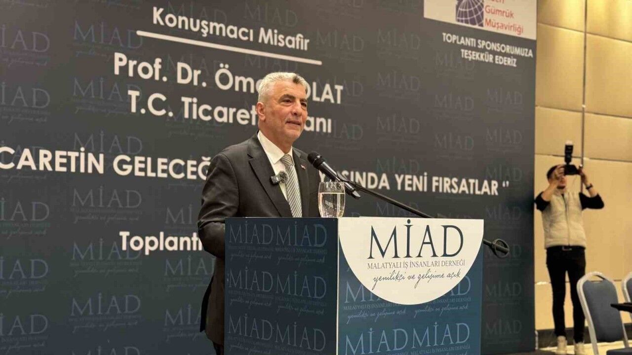 Ticaret Bakanı Ömer Bolat, Malatyalı İş İnsanları Derneği’nin (MİAD) düzenlenen geleneksel aylık toplantısında, "Ülkemizde Ticaretin Geleceği ve İş Dünyasında Yeni Fırsatlar" başlıklı konuşma gerçekleştirdi. Konuşmasına Malatya’nın tarihi ve kültürel özelliklerinden ve MİAD’ın kuruluşundan bugüne kadar yaptığı faaliyetlerden bahsederek başlayan Bolat, Kahramanmaraş merkezli depremlerin yol açtığı yıkımı ve Malatya’ya etkilerini anlattı. Bölgenin yeniden inşasının köy evleri, konutlar, iş yerleri, hastaneler, okullar, altyapı ve üstyapı faaliyetleriyle devam ettiğini ve Türkiye’nin dünyanın en büyük şantiyesi olduğunu dile getiren Bolat, "Bunu görmemek veya bunu görüp de inkar etmek gerçekten başka bir şey. Ama Türkiye bunu başardı. Bir iki senelik bir faaliyet kaldı. Dünyanın depremlerden en çok etkilenen ülkesi Japonya’dır. Japon yetkililerin bile hayranlıkla takdir ettiği bir gerçektir bu" dedi.