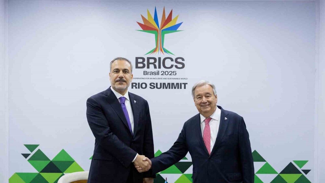 Dışişleri Bakanı Hakan Fidan, Brezilya’nın Rio de Janeiro kentinde düzenlenen BRICS Zirvesi marjında Birleşmiş Milletler (BM) Genel Sekreteri Antonio Guterres ile bir araya geldi.