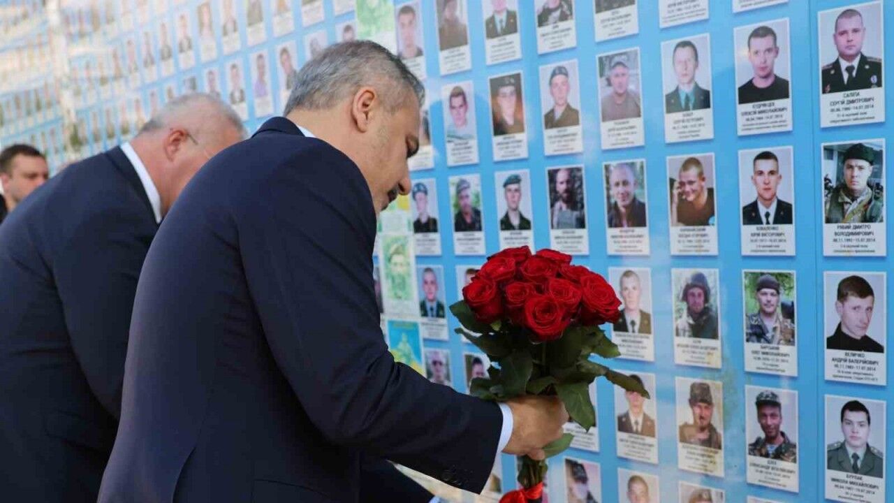 Dışişleri Bakanı Hakan Fidan, temaslarda bulunmak üzere geldiği Kiev’de Ukrayna savaşında hayatını kaybeden askerlerin anısına oluşturulan Anma Duvarı’na çiçek bıraktı.