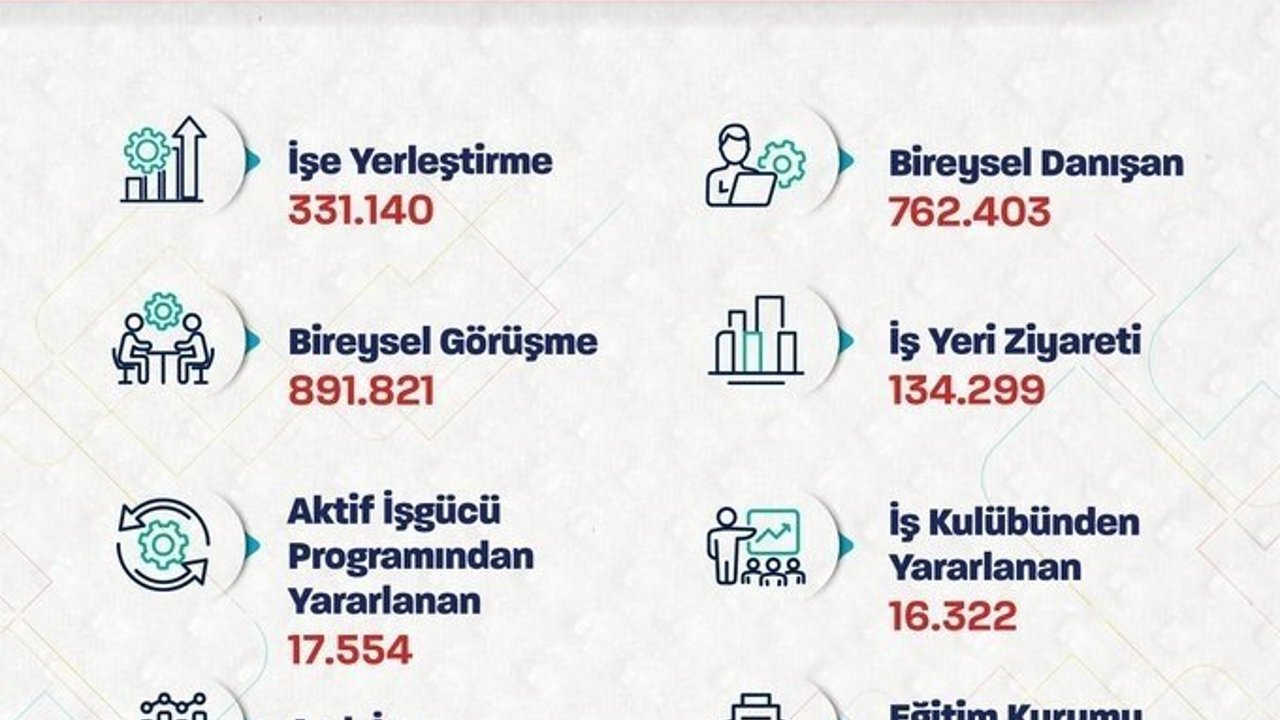 Bakan Işıkhan, sosyal medya hesabından yaptığı paylaşımda, bu yılın ilk 3 ayında 134 binden fazla iş yeri ziyareti yaptıklarını belirterek, 'Türkiye, istihdamını büyütme rotasında ilerlemeyi emin adımlarla sürdürüyor. Bu yılın ilk 3 ayında 331 binden fazla işe yerleştirmeye aracılık ettik. 134 binden fazla iş yeri ziyareti ve 892 bine yakın bireysel görüşme gerçekleştirdik. 508 bin 910 açık iş (işveren tarafından talep edilen-ihtiyaç duyulan eleman) tespit ettik. İşgücü piyasamızın ihtiyaçlarını tespit ederek vatandaşlarımıza daha fazla istihdam imkanı sunmak için gayretle çalışmaya devam edeceğiz' ifadelerini kullandı.