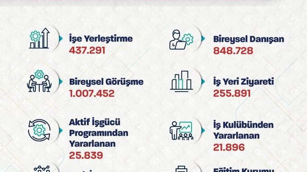 Çalışma ve Sosyal Güvenlik Bakanı Vedat Işıkhan, "İŞKUR aracılığıyla ocak-nisan aylarında toplam 437 bin 291 işe yerleştirmeye aracılık ettik. 1 milyonun üzerinde bireysel görüşme ve 255 bin 891 iş yeri ziyareti gerçekleştirdik" dedi.