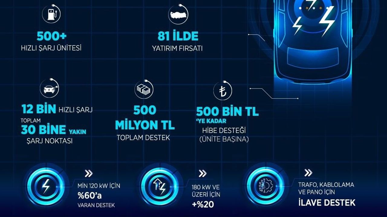 "Elektrikli Araçlar için Hızlı Şarj Altyapısı Destek Programı ile Türkiye’nin her şehrinde hızlı şarj istasyonları kurulmasını destekliyoruz. Birinci çağrı döneminde 81 şehrimizin tümünde hızlı şarj istasyonları kuruldu. Ülke geneline yayılan yaklaşık 12 bin hızlı şarj, toplam 30 bine yakın şarj noktası ile elektrikli araç sahipleri ülkemizin tamamında kesintisiz seyahat imkânına sahip. İlan ettiğimiz ikinci çağrı ile; özellikle nüfus yoğunluğunun daha az olduğu bölgelere de şarj ünitesi kurulumu gerçekleştirilmesini, elektrikli araç kullanımının tüm ülke sathında yaygınlaşmasını hızlandırmayı amaçlıyoruz. Türkiye’yi yenilikçi teknolojilerin öncü ülkelerinden biri haline getirecek adımlar atmaya devam edeceğiz."