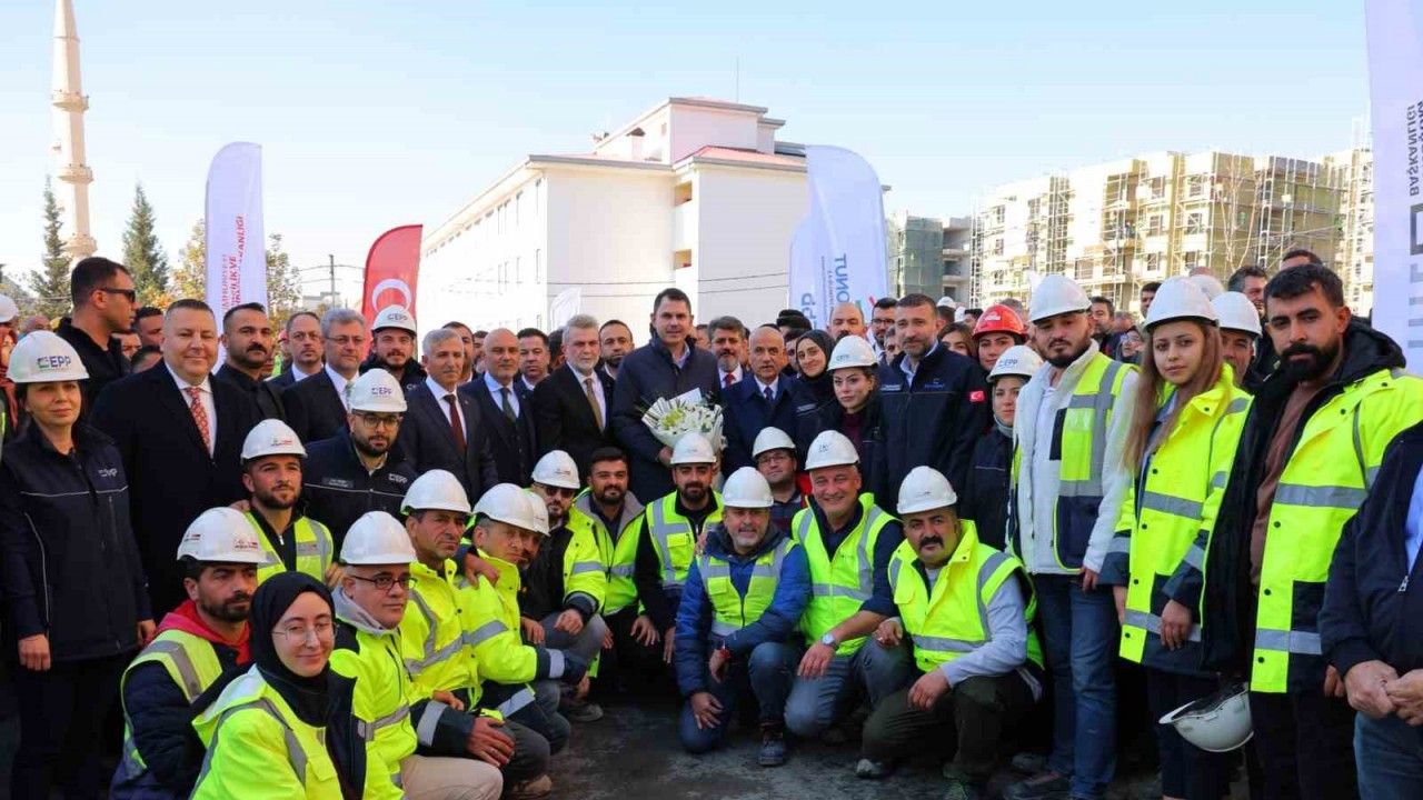 Depremden etkilenen 11 ilde 174 ayrı alanda 3 bin 481 şantiyede 200 bin emekçiyle birlikte 7 gün 24 saat şekliyle kesintisiz bir şekilde çalışmaların sürdüğüne dikkat çeken Çevre, Şehircilik ve İklim Değişikliği Bakanı Murat Kurum, "Türkiye Cumhuriyeti saatte 23, günde 550 konut üreten bilgiye, birikime, tecrübeye, liyakate sahip bir devlettir. 6 Şubat’ta verdiğimiz sözü milletimizle birlikte olmak, devletimizin gücünü, kudretini 11 ilimize sunmak suretiyle bu mücadeleyi ortaya koyduk ve artık son tuğlalarımızın konulduğu, son çivilerin çakıldığı deprem konutlarımızı bitirdik, son dükkanlarımızın ışıklarını burada yakıyoruz" dedi.