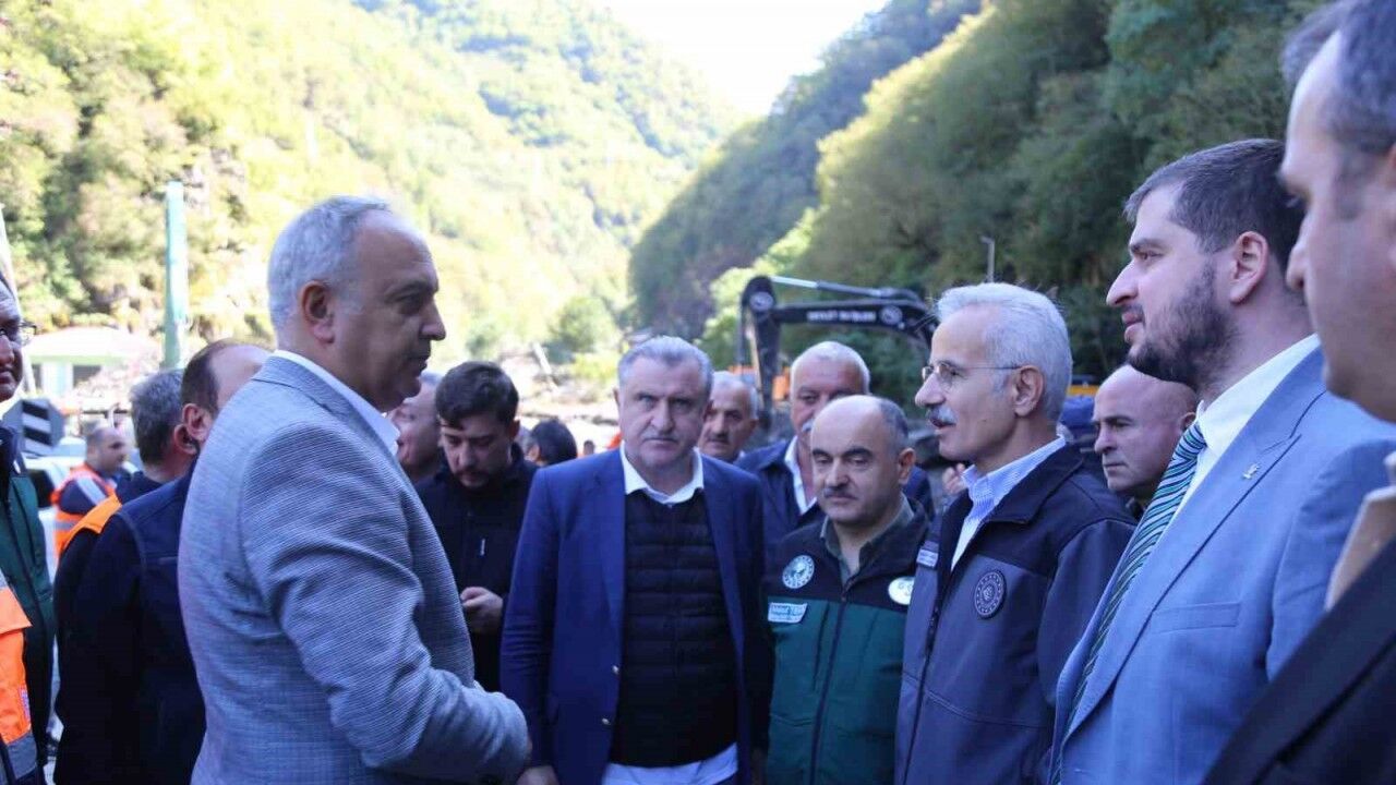 Şiddetli yağışların ardından yaşanan sel ve heyelanlar nedeniyle ulaşımda aksamalar meydana gelen Borçka’da, Bakan Uraloğlu ve Bakan Bak çalışmaları yerinde inceledi. Heyet, özellikle Borçka Camili Yolu’nda meydana gelen heyelan ve Karşıköy-Tektaş Köyü Yolu’ndaki tahribatla ilgili bilgi aldı.