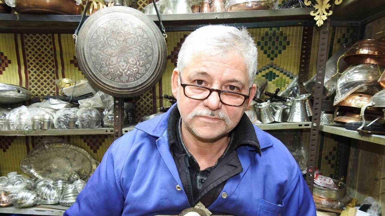 Gaziantep’te 60 yaşındaki bakırcı Mehmet Vakıf Durgun, bakırcılık sanatının merkezinde mesleğini yaklaşık 50 yıldır özveriyle sürdürüyor.