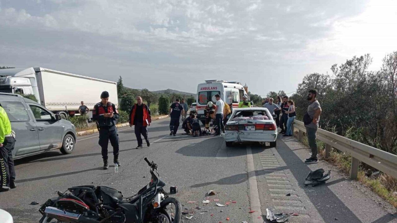 Balıkesir’in Burhaniye ilçesinde motosiklet ile otomobilin çarpıştığı kazada 2 kişi yaralandı.