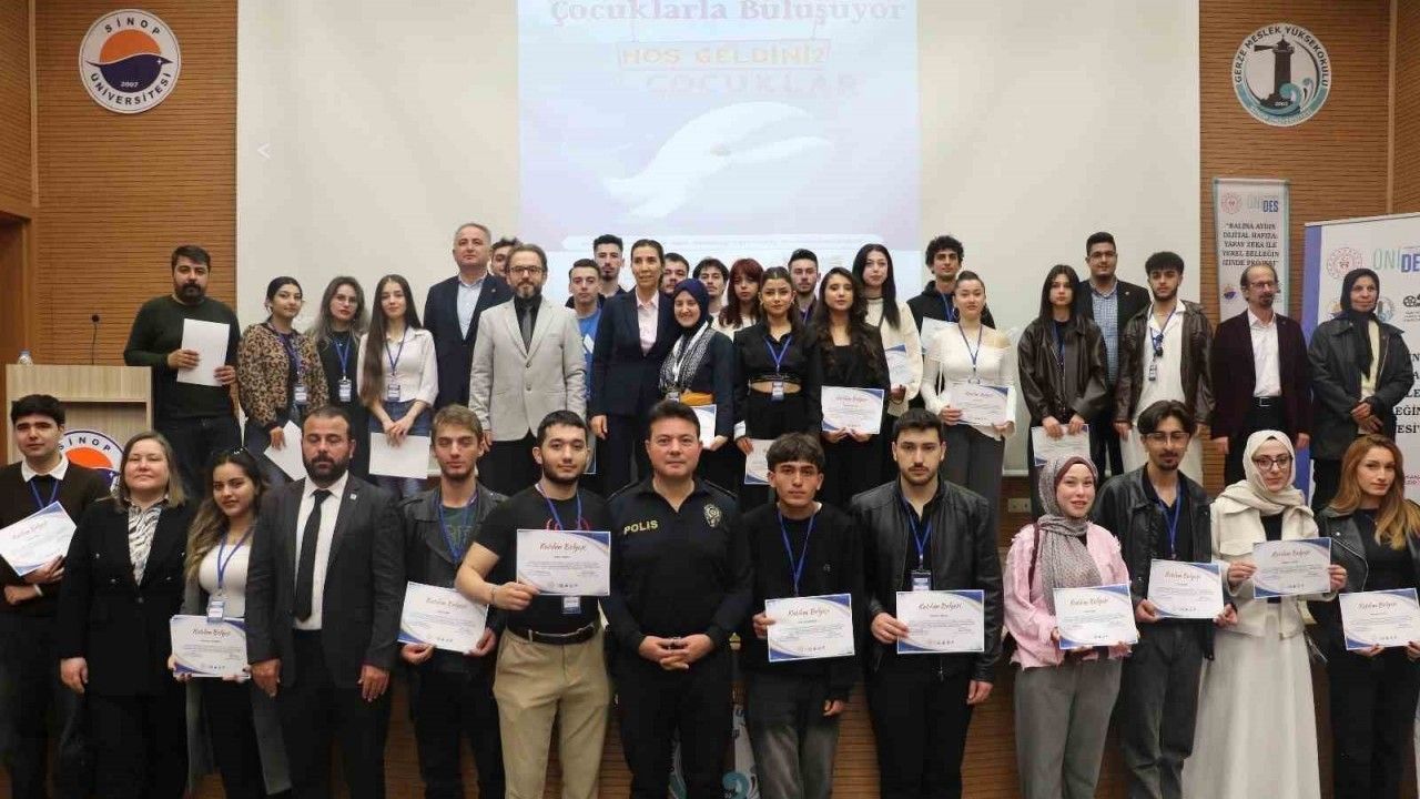 Gerze Meslek Yüksekokulu konferans salonunda düzenlenen gösterime, Gazi Mustafa Kemal İlkokulu’ndan 150 öğrenci katıldı. Yapay zeka destekli kısa animasyon, öğrencilerin büyük ilgisini çekti.
