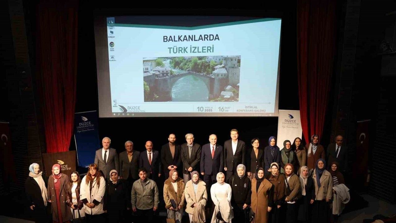 Düzce Üniversitesi tarafından düzenlenen "Balkanlarda Türk İzleri" başlıklı konferans, geniş bir katılımla gerçekleştirildi. İstiklal Konferans Salonu’nda ki programa; Düzce Belediye Başkanı Dr. Faruk Özlü ile eşi Prof. Dr. Onur Özlü, Rektör Prof. Dr. Nedim Sözbir, Rektör Yardımcısı Prof. Dr. İlhan Genç, İlahiyat Fakültesi Dekanı Prof. Dr. Ali Ertuğrul, Fen Edebiyat Fakültesi Dekanı Prof. Dr. Duygu Ekinci, akademisyenler ve öğrenciler katıldı.