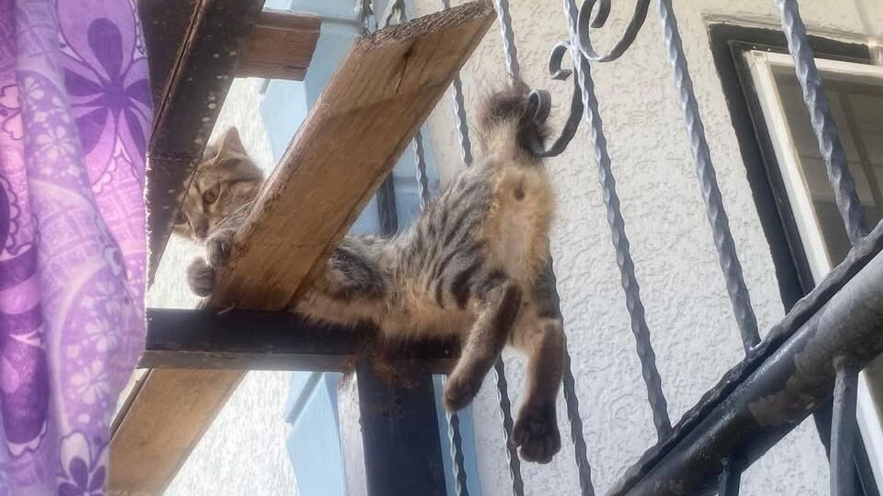 Hatay’ın Antakya ilçesinde balkonun demir korkuluklarına sıkışan kedi, itfaiye ekiplerinin müdahalesiyle kurtarıldı.