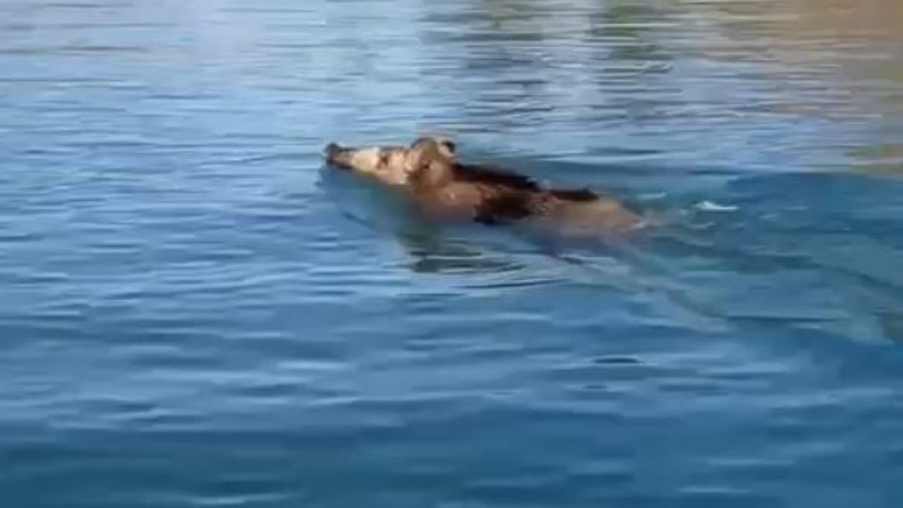 Sosyal medyada paylaşılan ve Manavgat ilçesi Oymapınar Baraj Gölü’nde çekildiği belirtilen görüntülerde, iki yaban domuzu göle girdi. Bu sırada tekne ile gezen yöre halkı domuzların yüzdüğünü görünce neye uğradığını şaşırdı. Vatandaşlar domuzları görüntüleyip o anları sosyal medyada paylaştı.