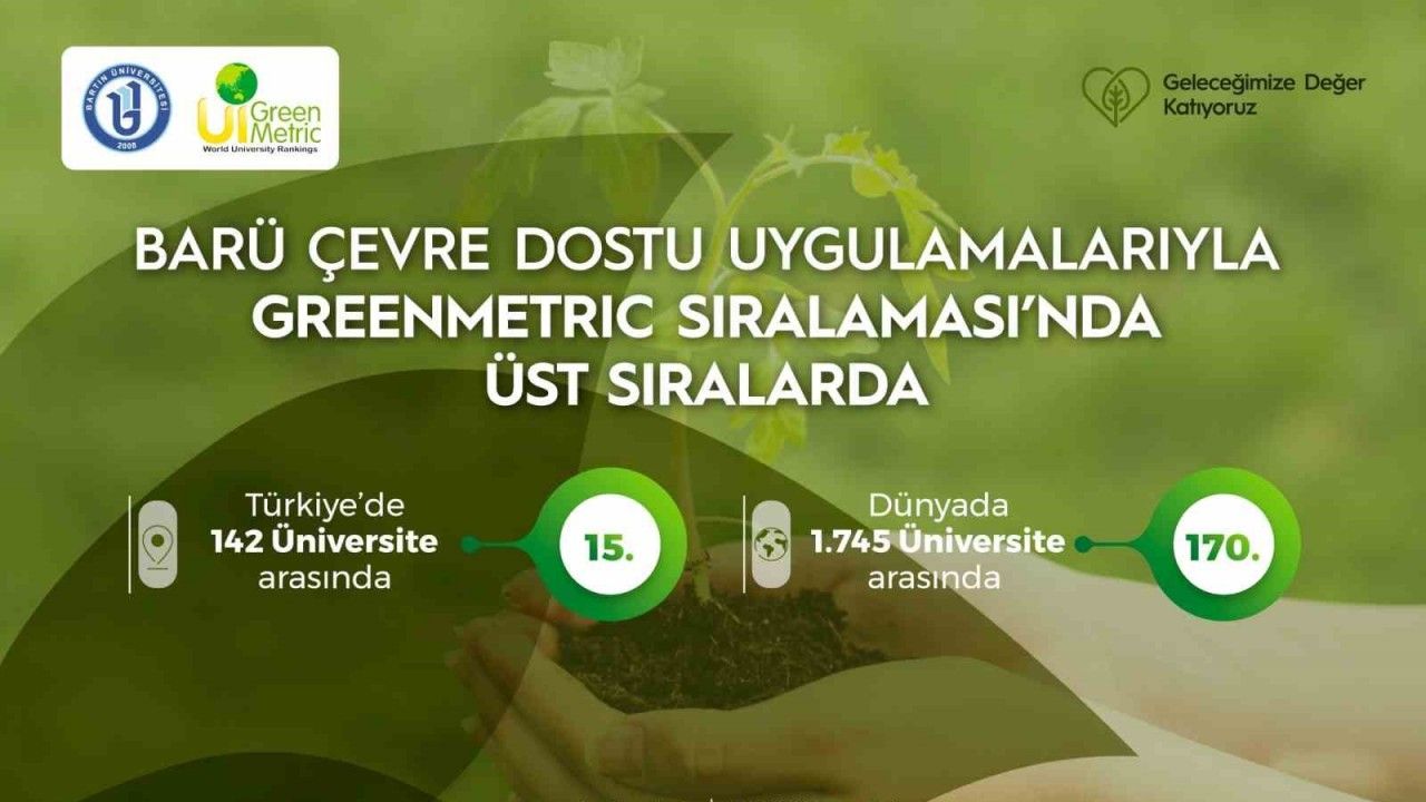 Enerji yönetiminden karbon salınımının azaltılmasına, yeşil alan oranlarından atık yönetimine, su tasarrufundan eğitim ve araştırma faaliyetlerine kadar geniş bir sürdürülebilirlik çerçevesini kapsayan listede BARÜ, Türkiye’den sıralamaya giren üniversiteler arasında da önemli bir başarı elde etti. Türkiye’de 142 üniversite arasında en yeşil 15’inci üniversite oldu. Devlet üniversiteleri arasında ise 10’uncu sıraya yerleşti. Ayrıca BARÜ, geçtiğimiz yıla göre farklı göstergelerde topladığı puanını 8 bin 300’e yükseltti.