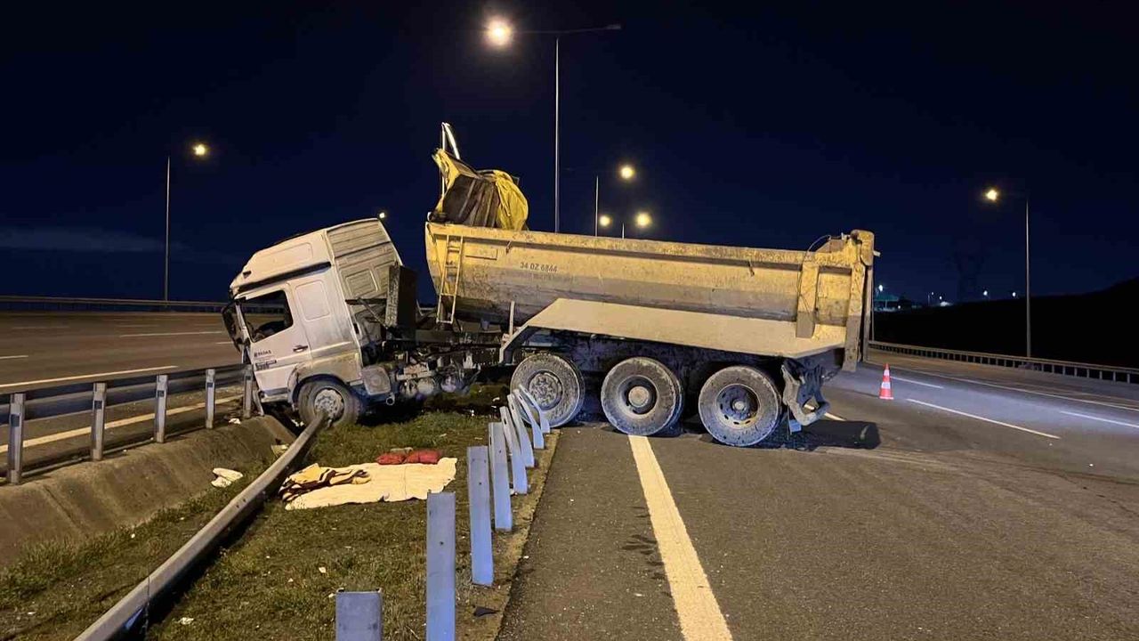 İstanbul Kuzey Marmara Otoyolu Başakşehir mevkiinde seyir halindeki hafriyat kamyonu önce serbest geçiş sistemi direğine çarpıp ardından bariyere girdi. Kazada sürücü ağır yaralandı.