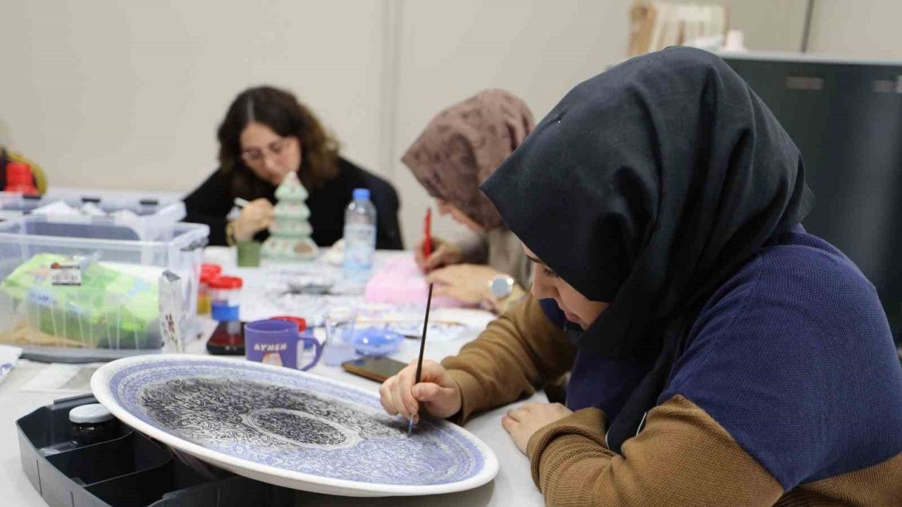 Başiskele Belediyesi Meslek Edindirme ve Hobi Kursları (BAŞ-MEK) bünyesinde açılan atölyede kadınlar, geleneksel el sanatlarından çini ve seramik eğitimi alıyor.