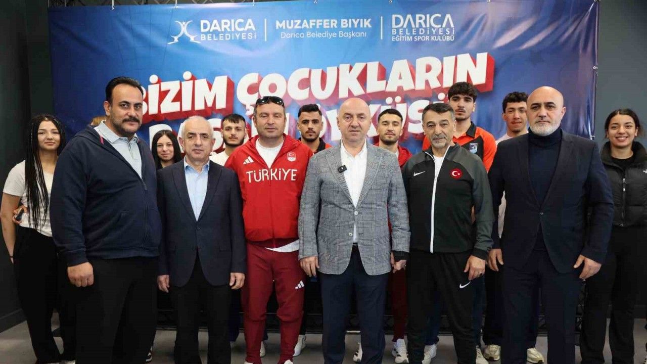 Darıca Belediye Başkanı Muzaffer Bıyık, Darıca Belediyesi Eğitim ve Spor Kulübü’nün ulusal ve uluslararası arenada başarılarıyla gurur kaynağı olan milli sporcularıyla bir araya geldi. 13 farklı branşta, 4 bine yakın lisanslı sporcusuyla Türk sporuna önemli katkılar sağlayan kulübün genç yetenekleri, elde ettikleri derecelerle Darıca’nın adını her geçen gün daha güçlü şekilde duyurmaya devam ediyor. Başkan Muzaffer Bıyık’a milli sporculara destek ziyaretinde Darıca Belediyesi Eğitim ve Spor Kulübü Başkanı Enver Demirci ile kulübün aynı zamanda milli takım antrenörleri olan Selim Vinçoğlu ve Adnan Şamdan da eşlik etti.
