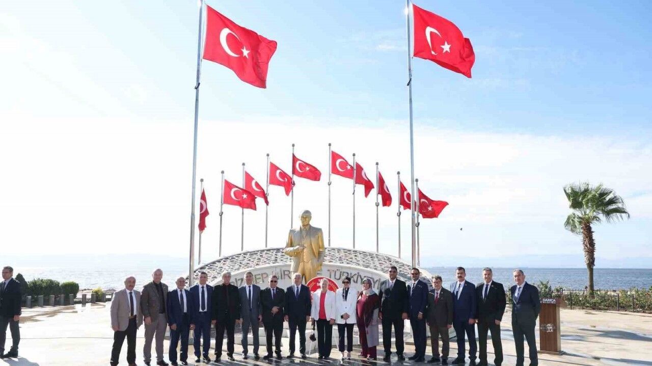 Darıca’da Muhtarlar Günü kutlamaları kapsamında Atatürk Anıtı’na çelenk sunuldu. Törene, Darıca Belediye Başkanı Muzaffer Bıyık, Darıca Kaymakamı Yaşar Dönmez, Muhtarlar Derneği Başkanı ve Kazım Karabekir Mahallesi Muhtarı Sıddık Topal ile ilçedeki muhtarlar katıldı. Başkan Bıyık, çelenk sunma töreninin ardından muhtarları belediyedeki makamında misafir ederek günlerini kutladı. Muhtarlığın yerel yönetimler açısından taşıdığı öneme vurgu yapan Bıyık, muhtarların vatandaşlar ile belediye arasında köprü vazifesi gördüğünü belirtti.