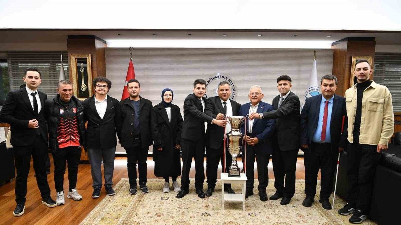 Kayseri Büyükşehir Belediye Başkanı Dr. Memduh Büyükkılıç; Sesi Görenler 1. Ligi’nde şampiyonluğa ulaşan Kayseri Görme Engelliler Spor Kulübü’nü makamında ağırladı. Başkan Büyükkılıç’a şampiyonluk kupası, takım tarafından sunuldu.
