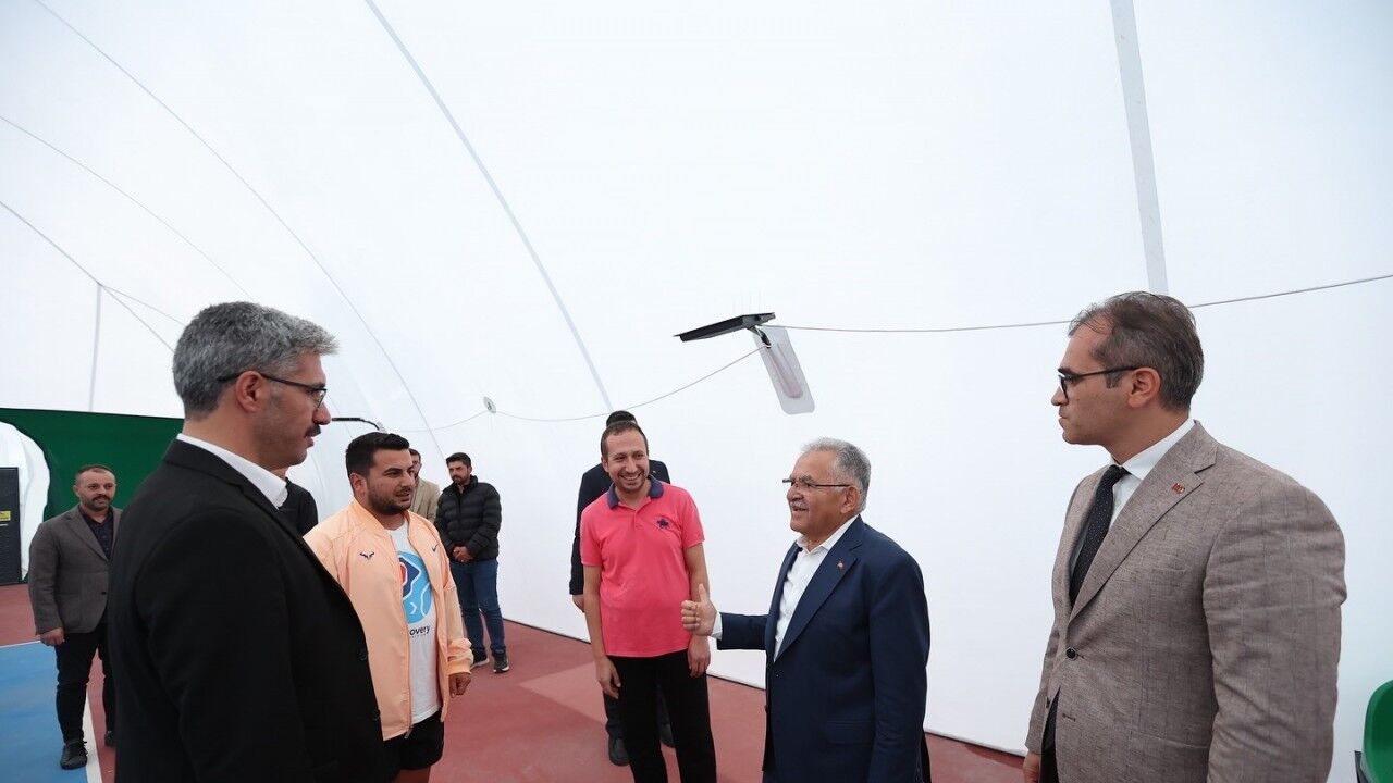 Kayseri Büyükşehir Belediye Başkanı Dr. Memduh Büyükkılıç, kente kazandırılan yeni spor tesislerini yerinde incelemeye devam ediyor. Bu kapsamda Başkan Büyükkılıç, Recep Tayyip Erdoğan Millet Bahçesi’nde hizmete açılan balon tenis kortlarını ziyaret ederek spor yapan vatandaşlarla ve eğitmenlerle sohbet etti.