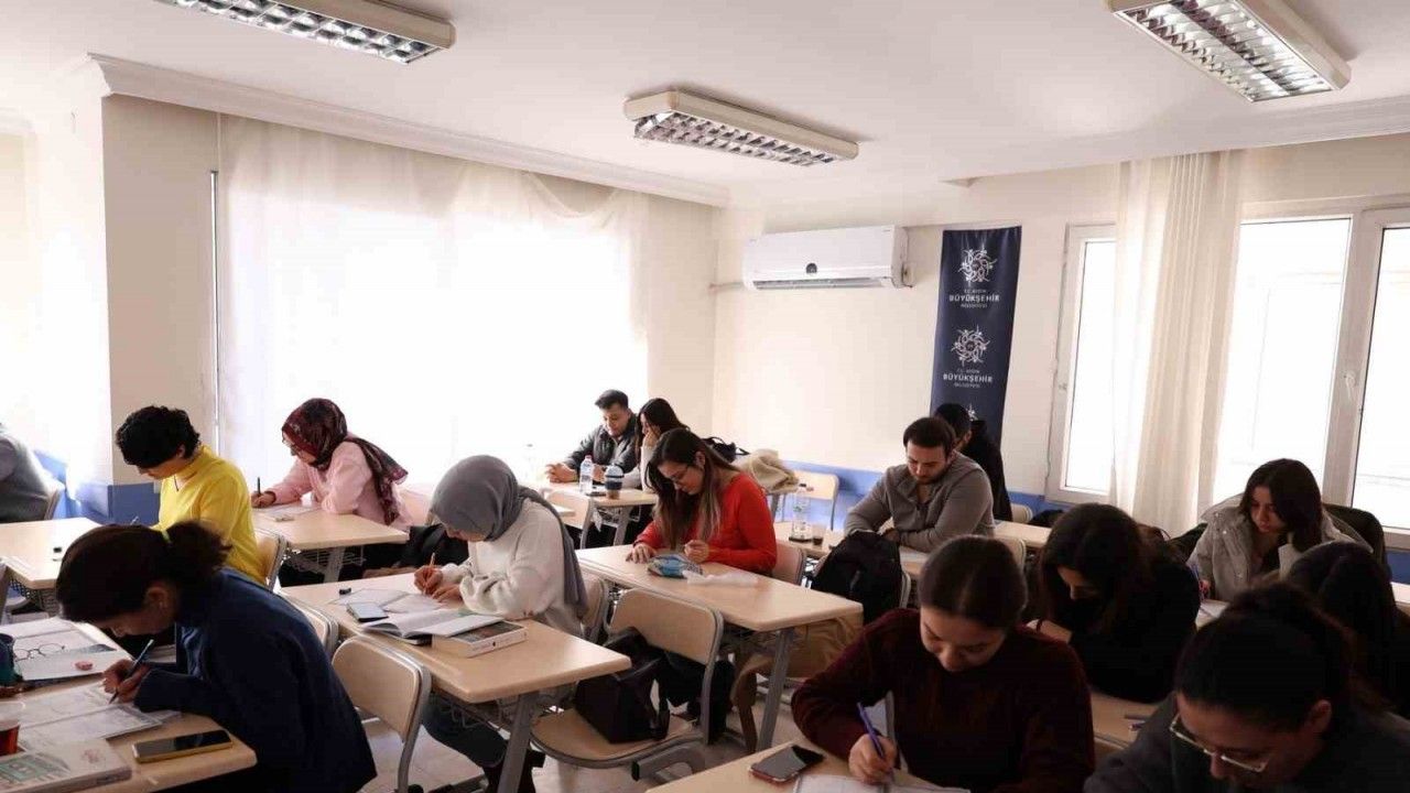 Büyükşehir Belediyesi 100. Yıl Gençlik ve Kültür Merkezi’nde ücretsiz olarak verilen Kamu Personeli Seçme Sınavı (KPSS) hazırlık eğitimleri, gençlerin yoğun katılımıyla sürüyor.
