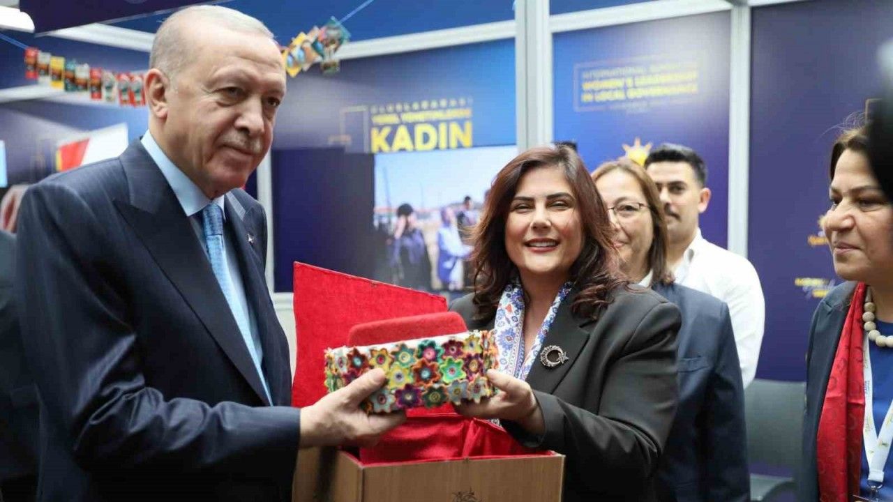 Aydın Büyükşehir Belediye Başkanı Özlem Çerçioğlu, Genel Merkez Kadın Kolları tarafından düzenlenen Uluslararası Yerel Yönetimlerde Kadın Zirvesine katılarak Aydın’ın yerel değerlerini ulusal ve uluslararası katılımcılarla buluşturdu. Zirveye gelen Cumhurbaşkanı Recep Tayyip Erdoğan ise Aydın standını ziyaret etti. Cumhurbaşkanını Aydın standında karşılayan Başkan Çerçioğlu, Aydın’ın kültürel mirasını ve yerel üretim kapasitesini yansıtan özel hediyeler takdim etti. Hediyeler arasında kadın kooperatiflerinin el emeği ürünleri ve kentin coğrafi işaretli tatları da yer alırken Başkan Çerçioğlu, Aydın Büyükşehir Belediyesi’nin kadın üreticilere verdiği destekleri ve yerel kalkınma çalışmalarını Cumhurbaşkanı Erdoğan’a anlattı.