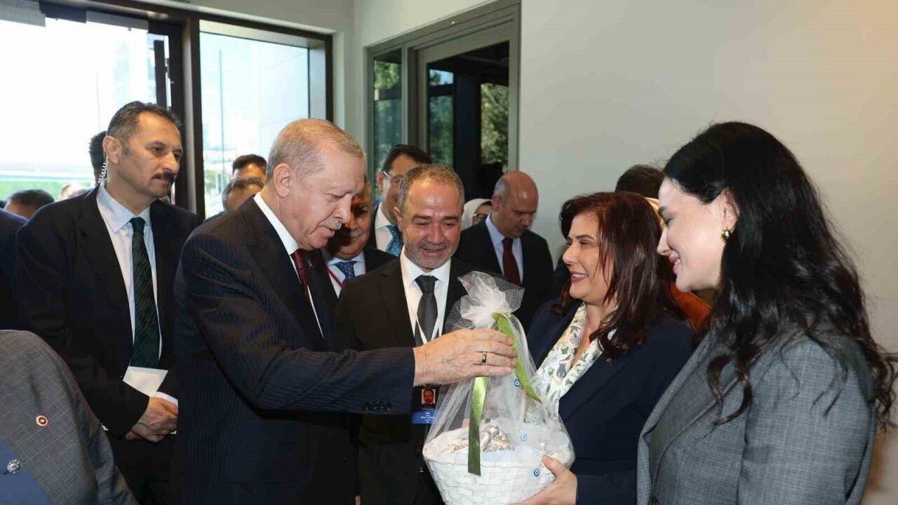 Toplantıya İl Başkanı Mehmet Erdem, milletvekilleri ve teşkilat mensupları ile birlikte katılan Aydın Büyükşehir Belediye Başkanı Özlem Çerçioğlu, Cumhurbaşkanı ve AK Parti Genel Başkanı Recep Tayyip Erdoğan ile görüşüp, kendisine özenle hazırlanmış Aydın’ın milli ürünü kuru incir sepeti takdim etti. Aydın incirini bizzat Büyükşehir Belediye Başkanı Özlem Çerçioğlu’nun elinden alan Cumhurbaşkanı Erdoğan ile Çerçioğlu arasındaki sıcak diyalog objektiflere yansıdı.