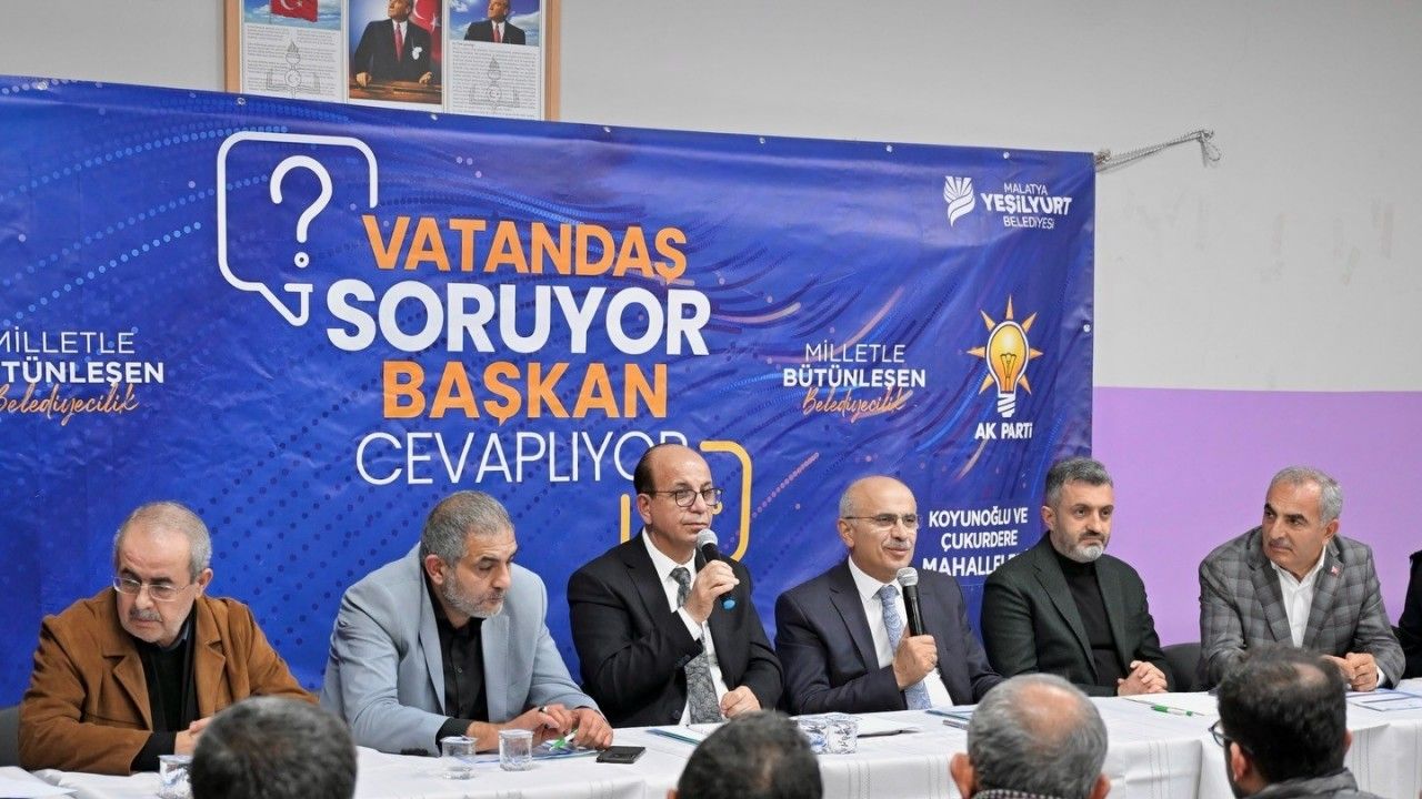 Yeşilyurt Belediyesi Muhtarlık İşleri Müdürlüğü tarafından ilçenin farklı mahallelerinde yürütülen ‘Vatandaş Soruyor, Başkanlar Cevaplıyor’ istişare ve değerlendirme buluşmalarının bir yenisi, Koyunoğlu ve Çukurdere Mahallelerinde düzenlendi.