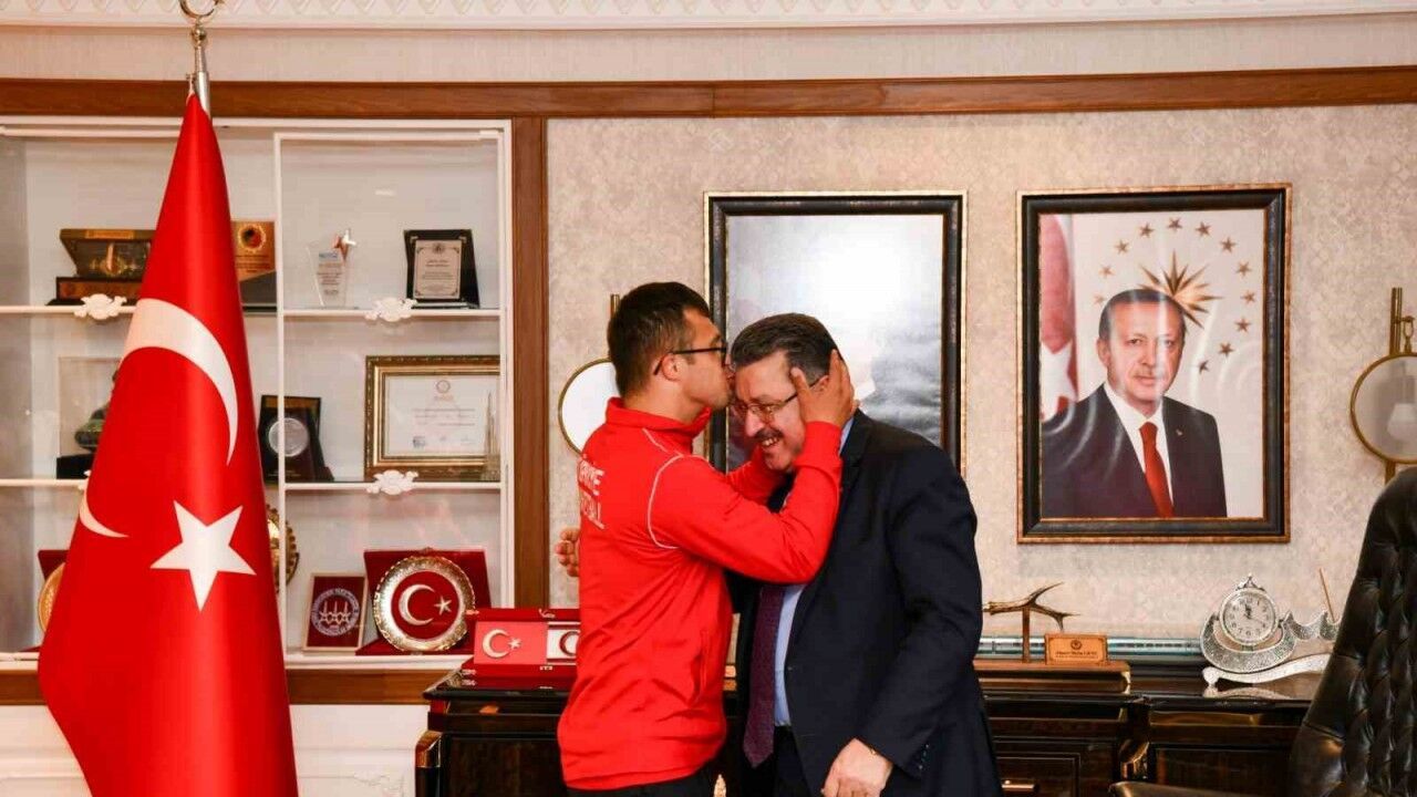 Ziyaretin en renkli anlarından biri ise Rizeli milli sporcu Eren Akcanca’ya özel olarak hazırlanan, isminin yazılı olduğu Trabzonspor forması hediye edilmesi oldu. Fanatik bir Trabzonspor taraftarı olan Eren’in yaşadığı mutluluk salona neşe kattı.