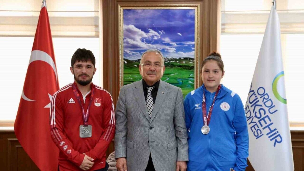 Ordu Büyükşehir Belediye Başkanı Dr. Mehmet Hilmi Güler, Azerbaycan’da düzenlenen ve 31 ülkeden toplam 365 sporcunun katıldığı U23 Serbest güreş Avrupa Şampiyonasında gümüş madalya kazanan Muhammet Karavuş ile Minikler Judo Türkiye Şampiyonasında 57 kilogramda Türkiye Şampiyonu olan İrem İncir’i makamında ağırladı.
