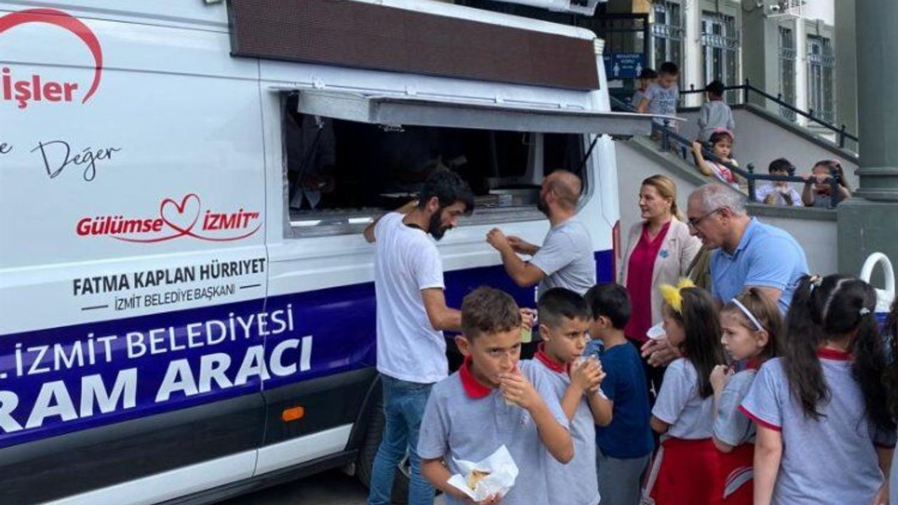 İzmit Belediye Başkanı Fatma Kaplan Hürriyet, İzmit Belediyesi Aşevinde üretilen kek ve limonataları öğrencilere ikram etti.KOCAELİ (İGFA) - İzmit Belediye Başkanı Fatma Kaplan Hürriyet, Fevzi Çakmak İlkokulu ve Leyla Atakan İlkokulu’ndaki giderek anaokulu öğrencilerine sırt çantası ve kırtasiye malzemesi desteği verdi. Başkan Hürriyet, daha sonra İzmit Belediyesi Mobil İkram Aracından ilkokul öğrencilerine kek ve limonata ikram etti.