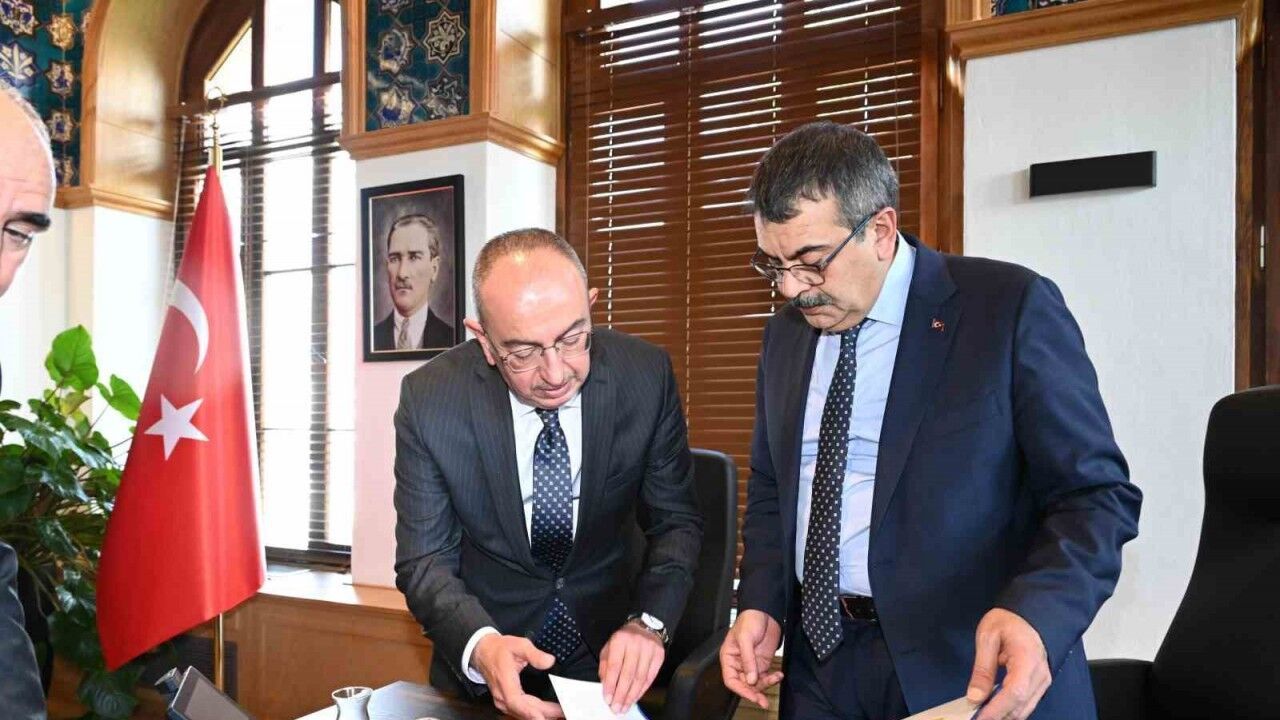 Konya’nın merkez Meram İlçe Belediye Başkanı Mustafa Kavuş, Konya ziyaretinde Milli Eğitim Bakanı Yusuf Tekin’e DOSD Meram’ı anlattı.