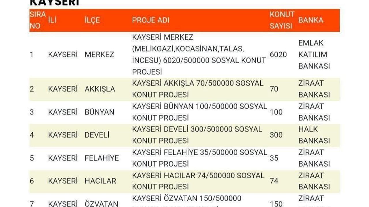 AK Parti Kayseri İl Başkanı Hüseyin Okandan; Kayseri’ye yapılacak olan 7 bin 562 sosyal konutun ilçelere göre kontenjanlarını açıkladı.