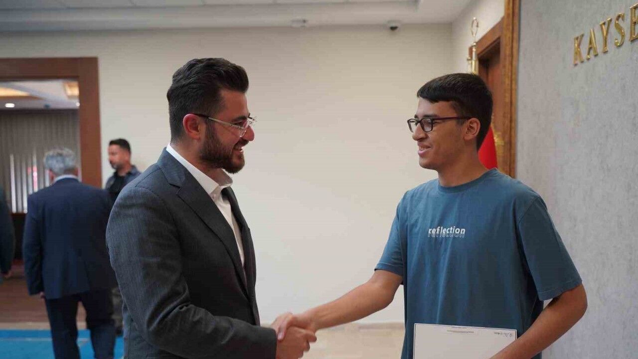 AK Parti Kayseri İl Başkanı Hüseyin Okandan, 2025 YKS Sayısal Türkiye 3.’sü olan Erciyes Anadolu İmam-Hatip Lisesi mezunu Ahmet Yasin Ekmen ile bir araya geldi.