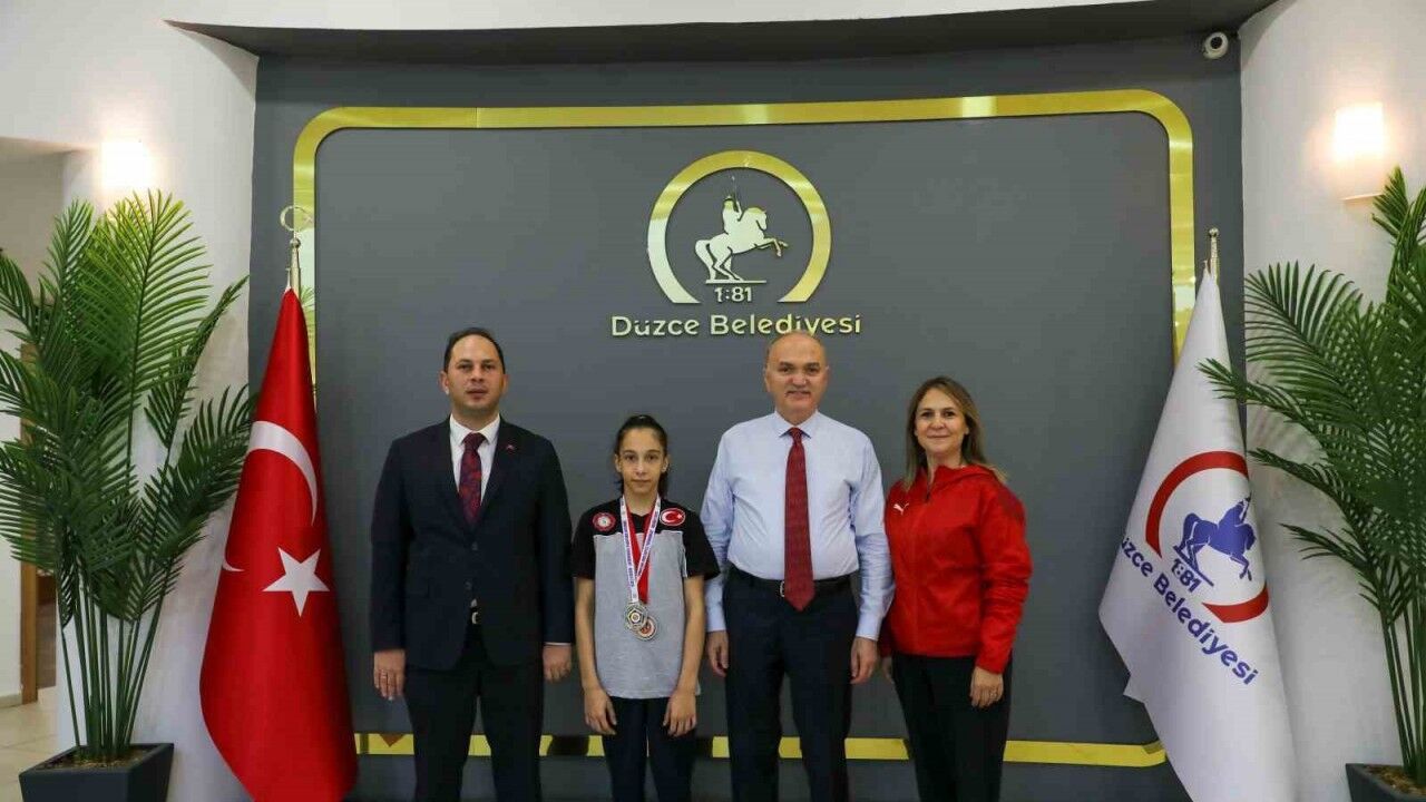 Başkan Özlü, genç sporcuyu başarısından dolayı kutlarken, Düzce Belediyesi olarak spora ve sporculara her zaman destek olacaklarını vurguladı.