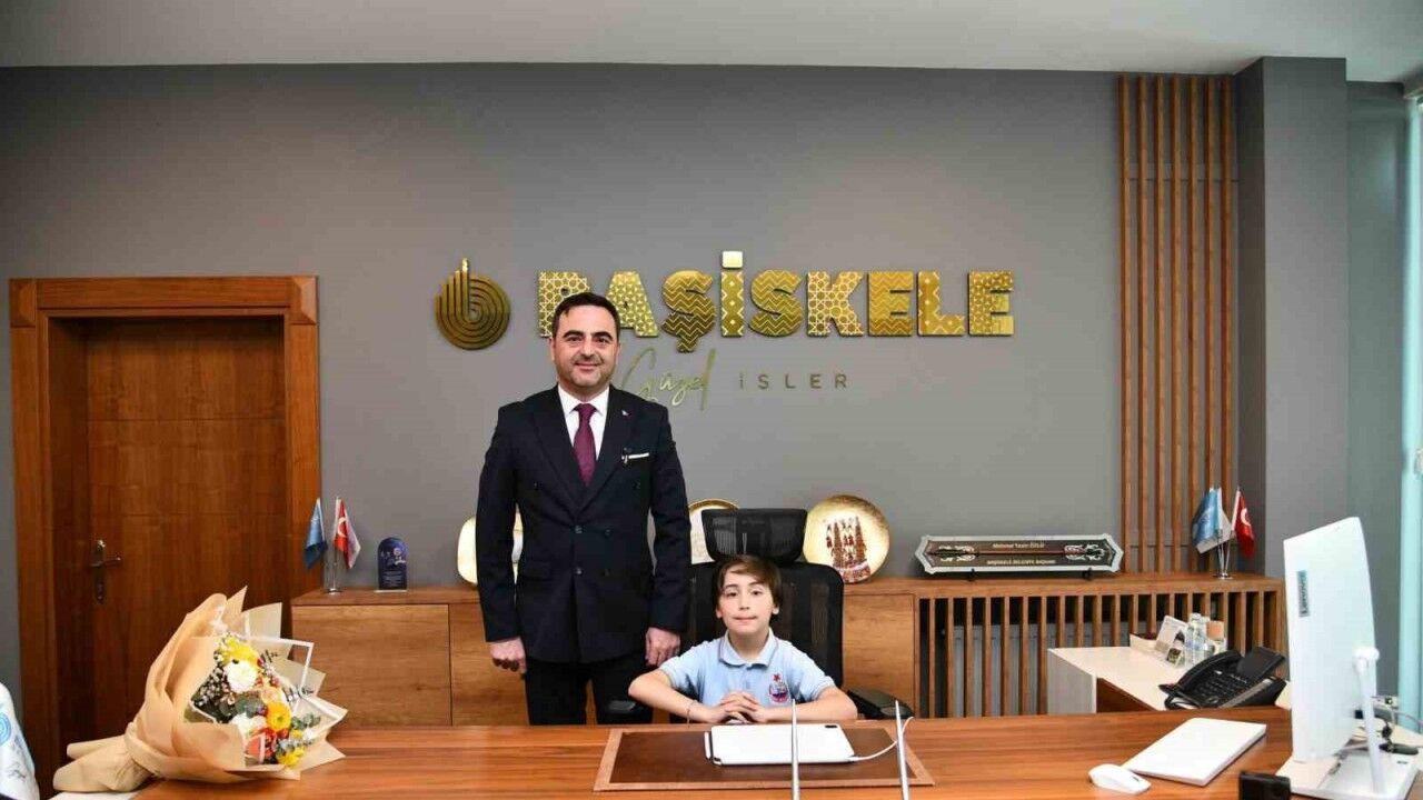 Başiskele Belediye Başkanı Yasin Özlü, 23 Nisan Ulusal Egemenlik ve Çocuk Bayramı dolayısıyla başkanlık koltuğunu Mehmet Süha Uçar Bahçecik Körfez İlkokulu öğrencisi Abdullah Singil’e devretti.