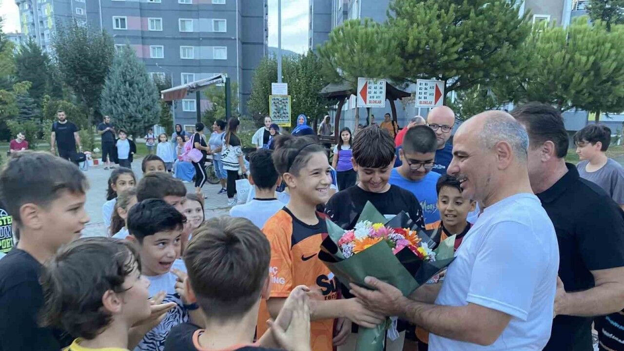 Körfez Belediye Başkanı Şener Söğüt, ’Sizinle maç yapmak istiyoruz’ diyen çocuklara verdiği sözü unutmadı. Eşofmanlarını giyen Başkan Söğüt, çocuklarla voleybol oynadı ve penaltı atışı yaptı.