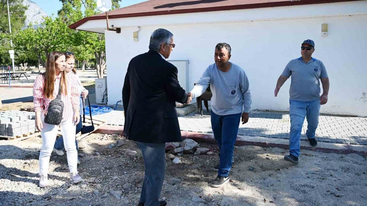İlk olarak Kemer Belediyesi Kındılçeşme Günübirlik Piknik Alanı ve Kır Düğün Bahçesi’nde yapımı tamamlanmak üzere olan karavan park, kır düğünü alanı ve çevre düzenlemesi çalışmalarını inceleyen Başkan Topaloğlu ve Başkan Yardımcısı Gül, çalışmaların iki gün içerisinde tamamlanması doğrultusunda birim müdürlerine talimat verdi.