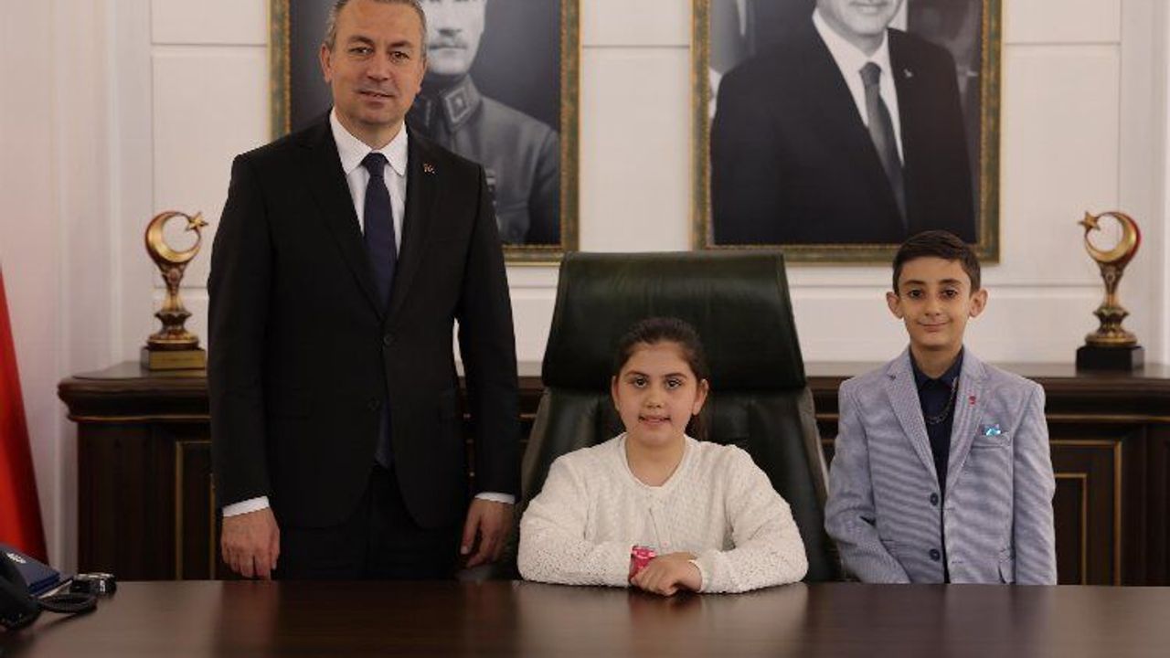 23 Nisan Ulusal Egemenlik ve Çocuk Bayramı Münasebetiyle Sivas Belediye Başkanı Dr. Adem Uzun, makamını Reşat Şemsettin Sirer İlkokulu öğrencisi Hatice Betül Karakuş'a devretti. Umut Ekrem Küpeli ise Belediye Başkanvekili görevini üstlendi.SİVAS (İGFA) - 23 Nisan Ulusal Egemenlik ve Çocuk Bayramı etkinlikleri kapsamında geleneksel hale gelen çocukların temsili olarak yönetici koltuğuna oturmaları töreni, Sivas Belediyesi Başkanlık makamında da gerçekleşti.