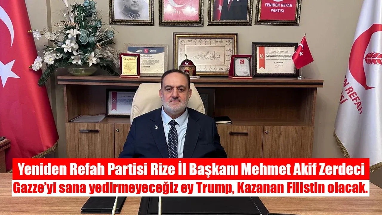 Yeniden Refah Partisi olarak; her geçen gün Türkiye sınırına doğru ilerlemekte olan Siyonist işgal planlarına karşı, hem uyanık olacağız hem de halkımızı uyandıracağız diyen Rize İl Başkanı Mehmet Akif Zerdeci: "